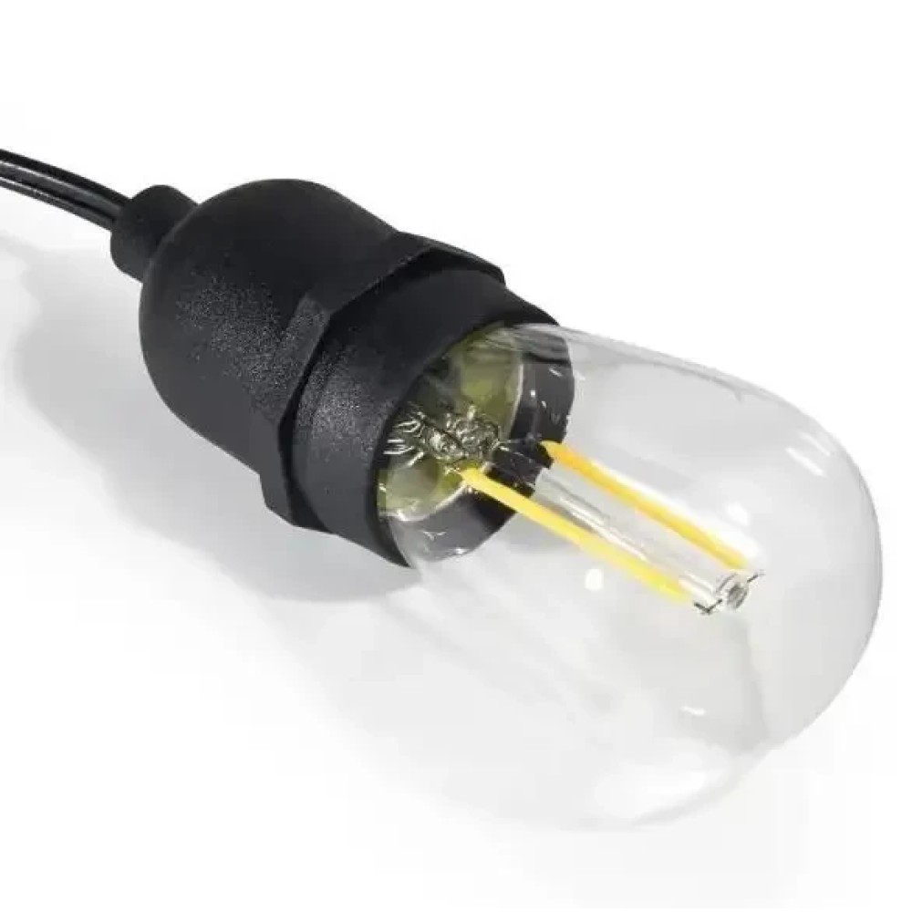 Идеальное освещение для вашего заднего двора, террасы, беседки, патио или современной беседки. Каждый вечер воссоздайте свое любимое вечерние настроение или выделите особое событие Цвет провода и патронов - черный. Мощность ламп - 4 Вт. Длина шланга - 15 м Шаг между лампами - 50 см. Источник питания - 220 В. ХАРАКТЕРИСТИКА тип - светодиодная Filament тип цоколя - Е27 цвет свечения - warm white мощность - 4вт световой поток - 140лм