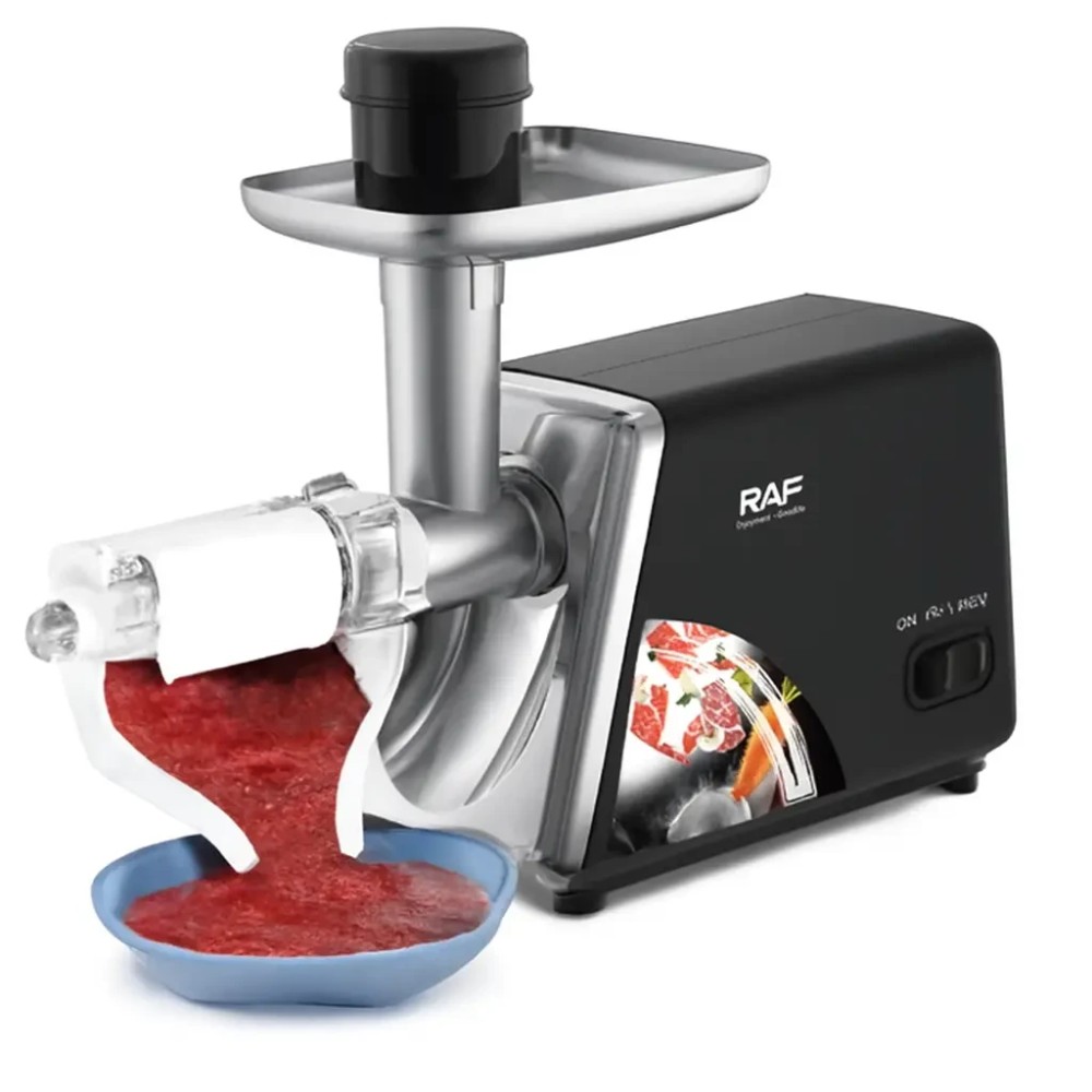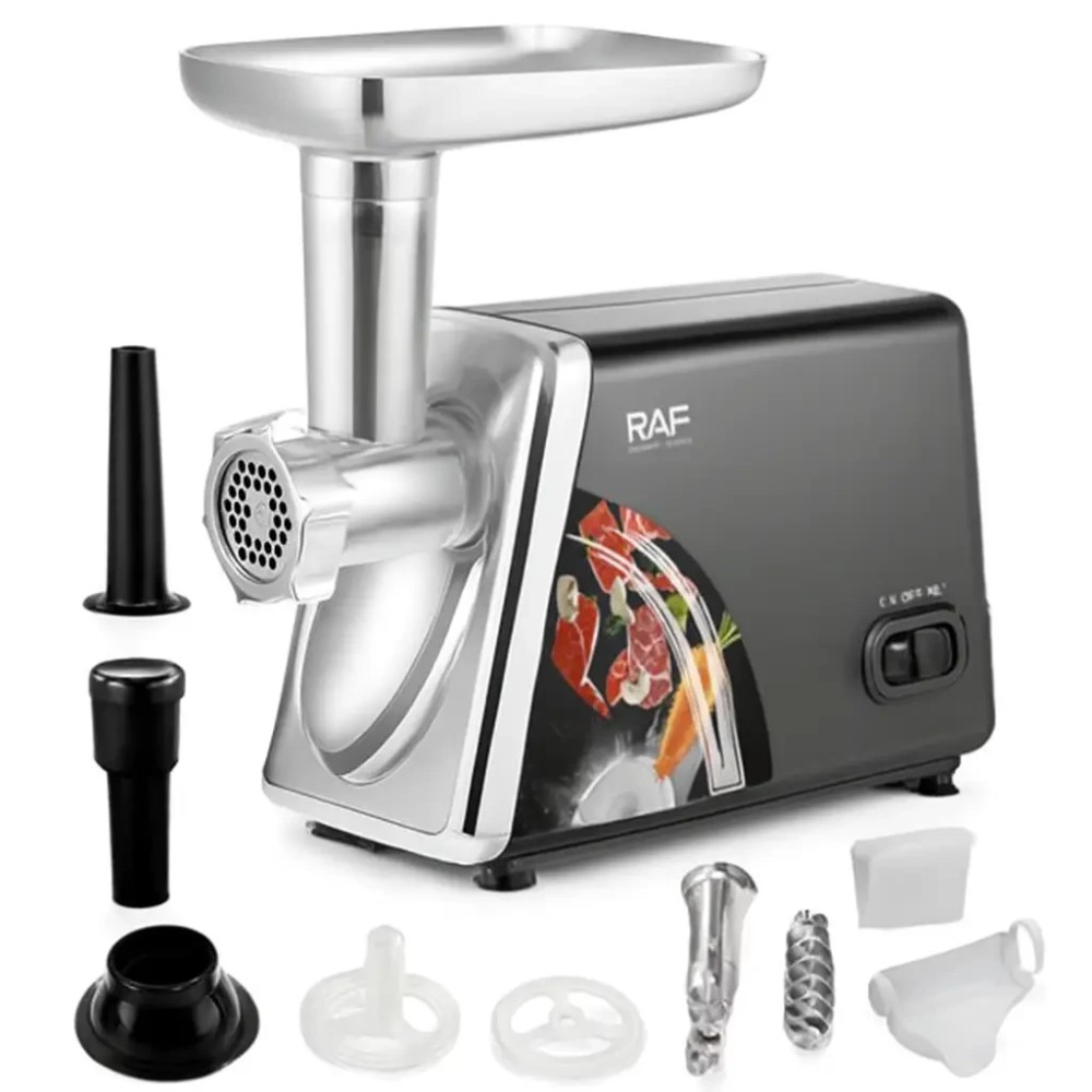 Описание Электрическая мясорубка RAF R.3383 — это многофункциональное устройство 3 в 1, которое сочетает в себе мощный измельчитель мяса, соковыжималку и насадки для приготовления домашних колбас. Мощность 2500 Вт обеспечивает быстрое и эффективное перерабатывание мяса, овощей и других продуктов, а практичные насадки расширяют функциональность прибора. Соковыжималка делает свежие напитки из фруктов и овощей, а комплект насадок позволяет легко формировать фарш, колбасы и котлеты в домашних условиях. Устойчивая конструкция и надёжные материалы обеспечивают длительную службу, а всё оборудование легко очищается после использования. Преимущества Мощность 2500 Вт — высокая производительность измельчения. Универсальная функция 3 в 1: мясорубка, соковыжималка и колбасные насадки. Соковыжималка в комплекте для свежих напитков. Несколько решёток для фарша разной толщины. Насадки для формирования домашних колбас. Функция реверса облегчает работу при заклинивании продукта. Защита двигателя от перегрева. Прочный корпус и удобство очистки. Характеристики Модель: RAF R.3383 Тип: электрическая мясорубка 3 в 1 Мощность: 2500 Вт Функции: измельчение мяса, соковыжималка, насадки для колбас Материал корпуса: пластик + нержавеющая сталь Количество решёток: 3 (разные диаметры) Реверс: есть Толкатель: есть Защита от перегрузок: да Цвет: чёрный Питание: сеть 220 В Применение: мясо, овощи, фрукты, колбасы Лёгкая очистка: да Компактный дизайн: подходит для любой кухни Комплектация Электрическая мясорубка RAF R.3383 Соковыжималка 3 решётки для фарша Насадки для колбас Толкатель Инструкция пользователя Фирменная упаковка