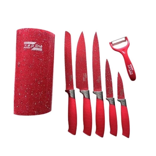Профессиональный набор ножей, Zepline, ZP-046, с подставкой, набор кухонных ножей, 7 предметов, Красный