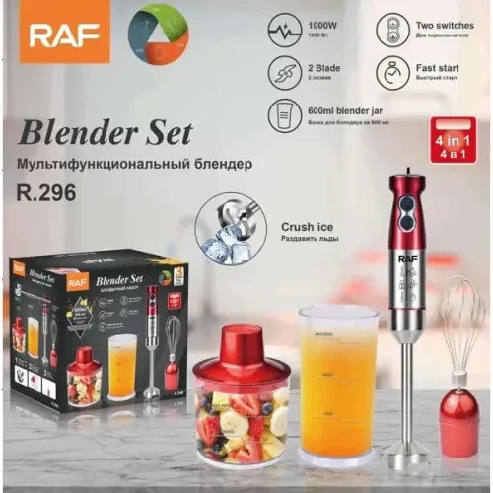 Мощный кухонный блендер 3 в 1 RAF R.296 Красный Ручной блендер миксер измельчитель на 1000 Вт