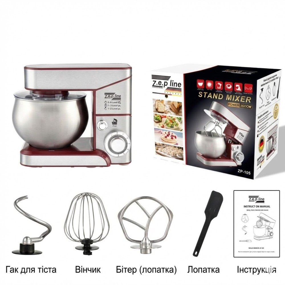 Кухонный тестомес миксер Zepline ZP-105 позволит Вам замесить тесто, приготовить десерты, взбить яйца для крема, смешать фарш и т.д.