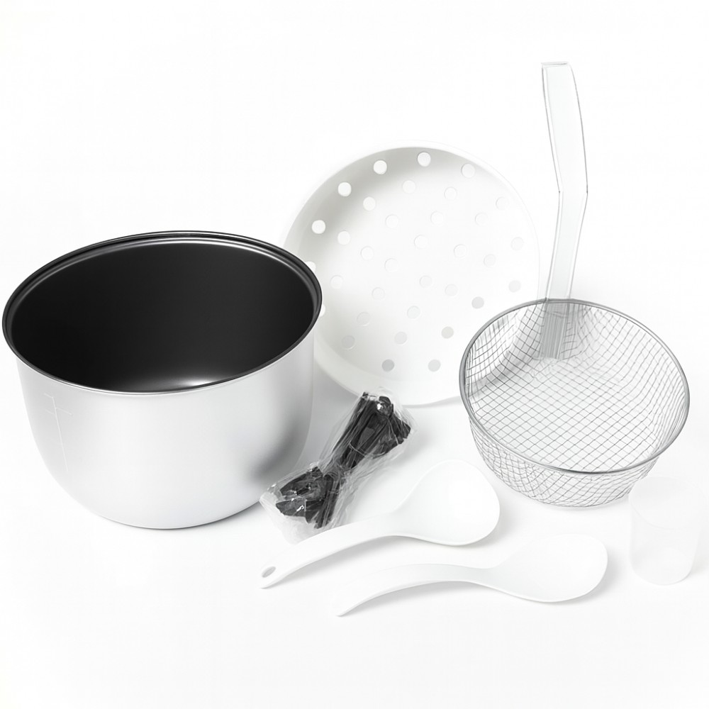 Мультиварка с чашей объёмом 5 литров и мощностью 1000 Вт предназначена для удобного и стабильного приготовления повседневных блюд в домашних условиях. Наличие 30 автоматических программ и электронного управления позволяет готовить без постоянного контроля, получая предсказуемый результат.