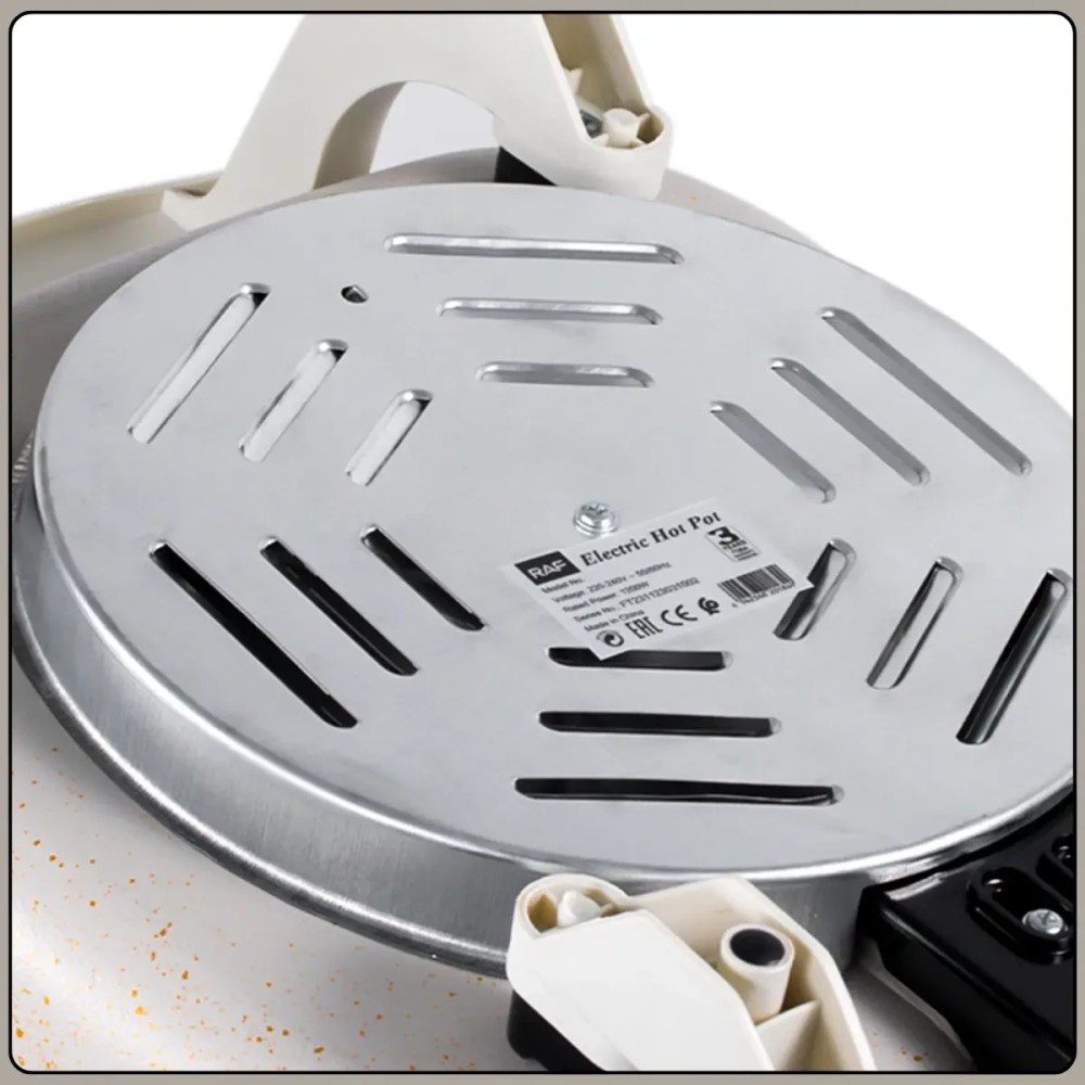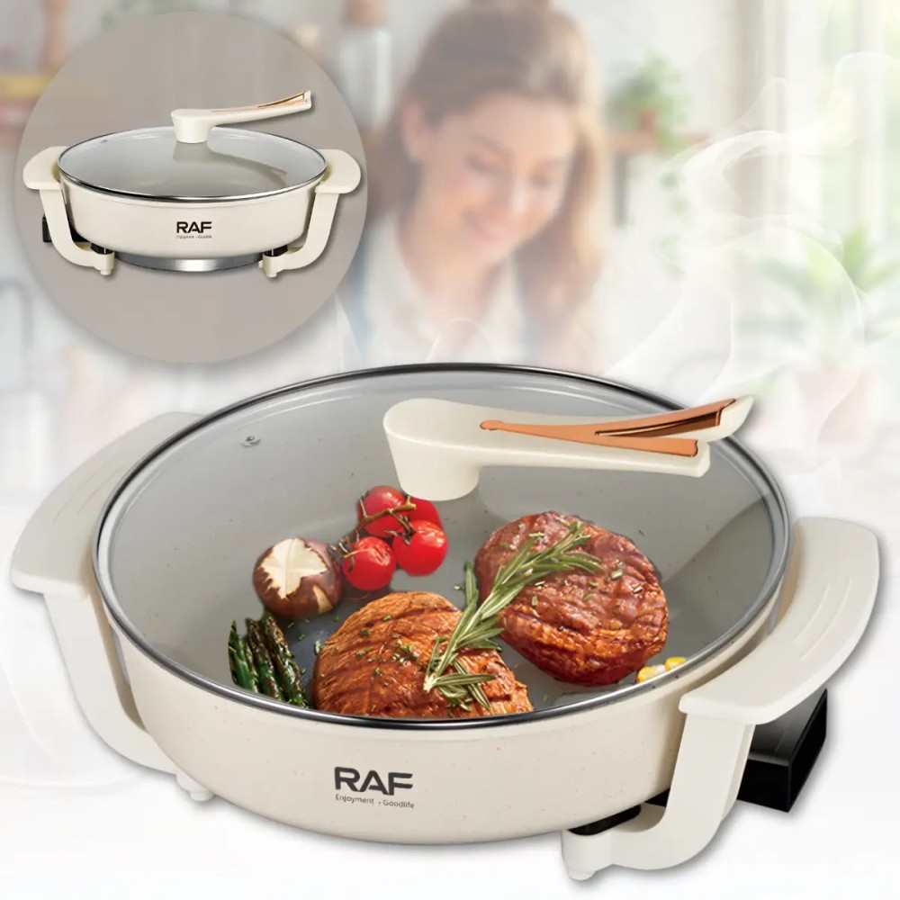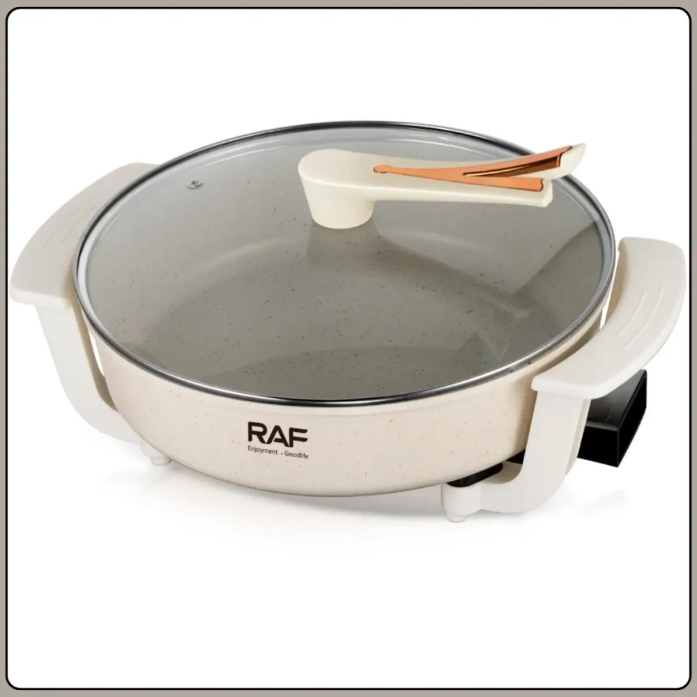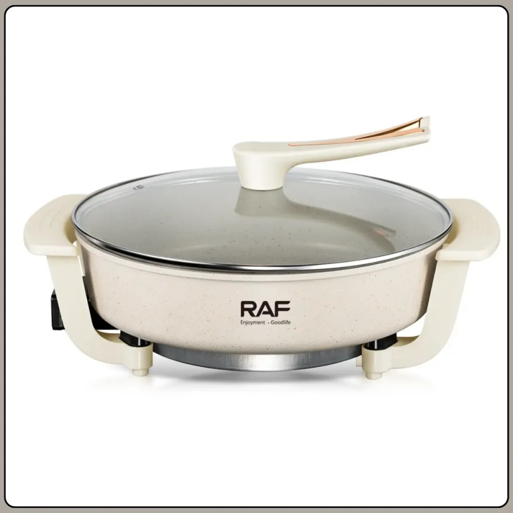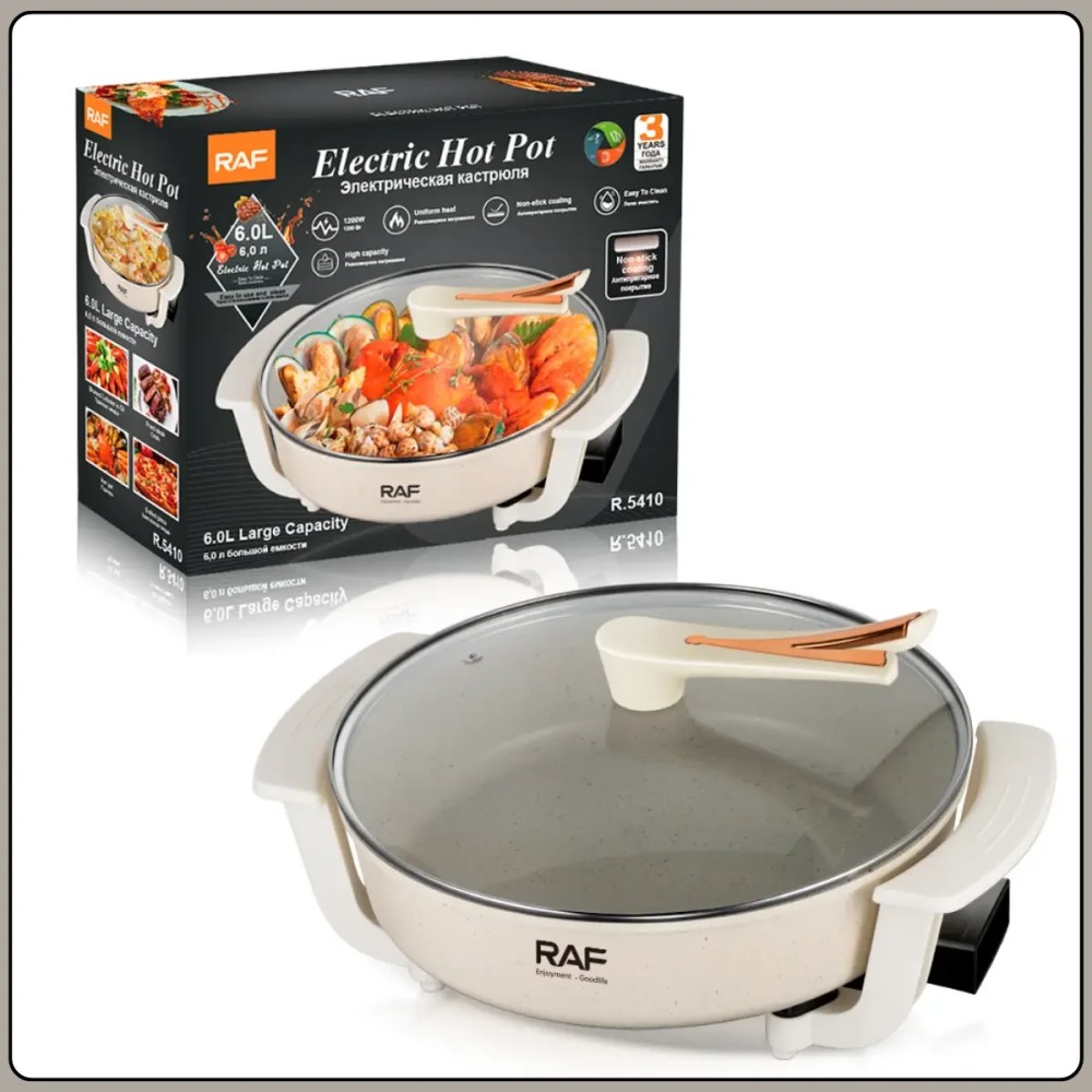 Електрична каструля з регулюванням температури й антипригарним покриттям RAF R.5410 1200W Електрична каструля RAF R.5410 призначена для зручного та швидкого приготування повсякденних страв в домашніх умовах. Об'єм 6 літрів дає змогу готувати супи, рагу, каші та інші страви для всієї родини. Антипригарне покриття запобігає пригоранню їжі та неабияк спрощує догляд після використання, а рівномірне нагрівання забезпечує стабільний результат під час кожного приготування. Модель обладнана регульованим контролем температури, що дає змогу підбирати оптимальний режим під різні рецепти. Прозора скляна кришка дає змогу контролювати процес приготування без втрати тепла. Компактний корпус і лаконічний бежевий колір роблять каструлю практичним і універсальним рішенням для будь-якої кухні. Переваги: Висока потужність: 1200 Вт для швидкого нагрівання Великий об'єм: 6 літрів для приготування великих порцій Антипригарне покриття: запобігає прилипанню їжі Рівномірне нагрівання: стабільна температура по всій поверхні Регулювання температури підбір режиму під різні страви Прозора кришка: контроль приготування без відкриття Простота догляду: легке очищення після використання Характеристики: Тип пристрою: електрична каструля Потужність: 1200 Вт Об'єм: 6,0 л Покриття чаші: антипригарний Нагрев: рівномірний Контроль температури: регульований Кришка: скляна (прозора) Напруга живлення: 220-240 В Частота: 50-60 Гц Розмір: 14×38 см Колір корпусу: бежевий