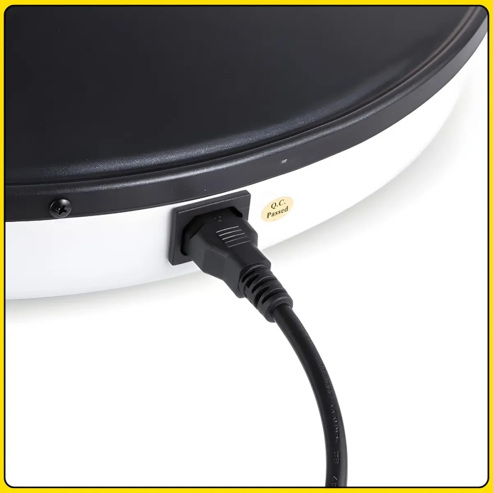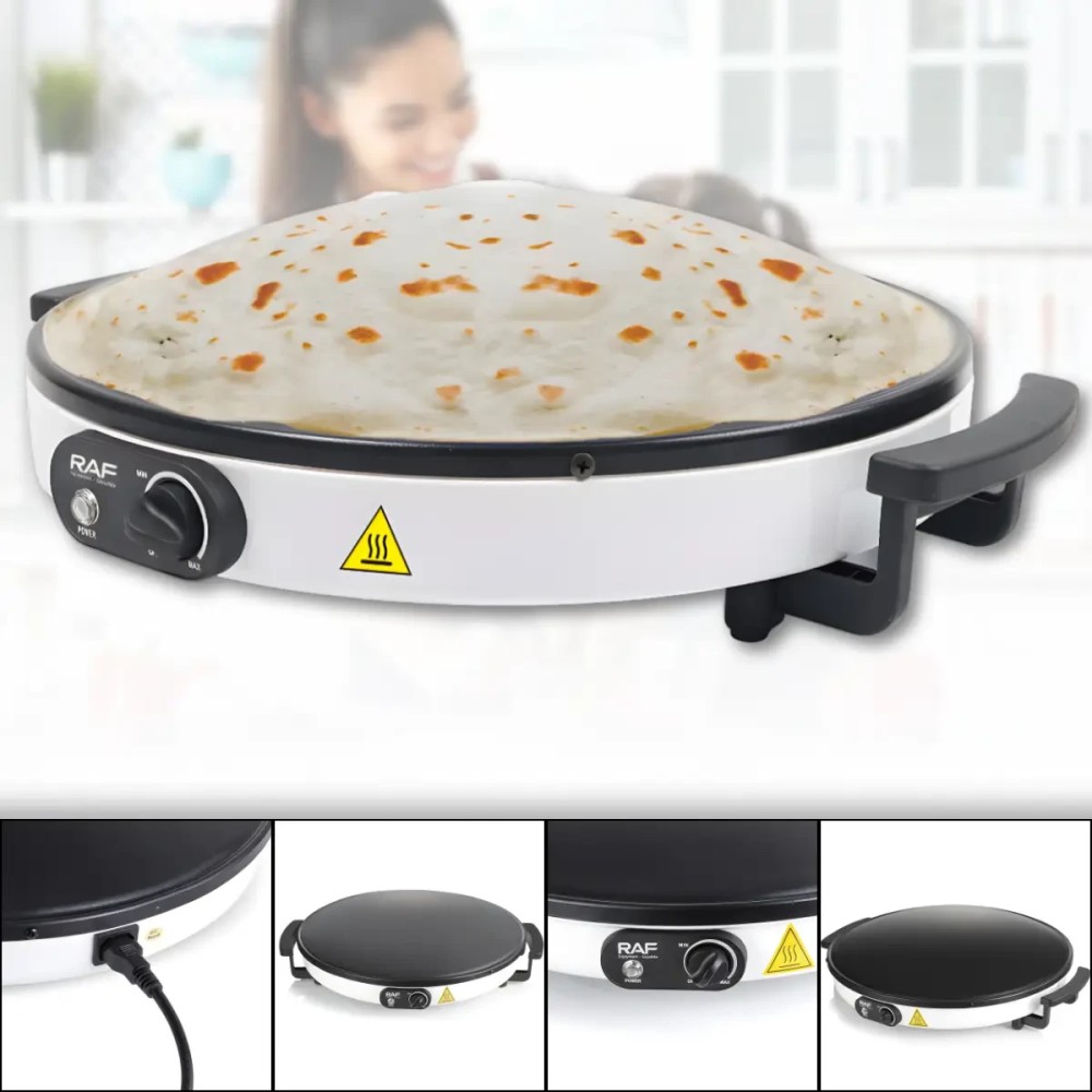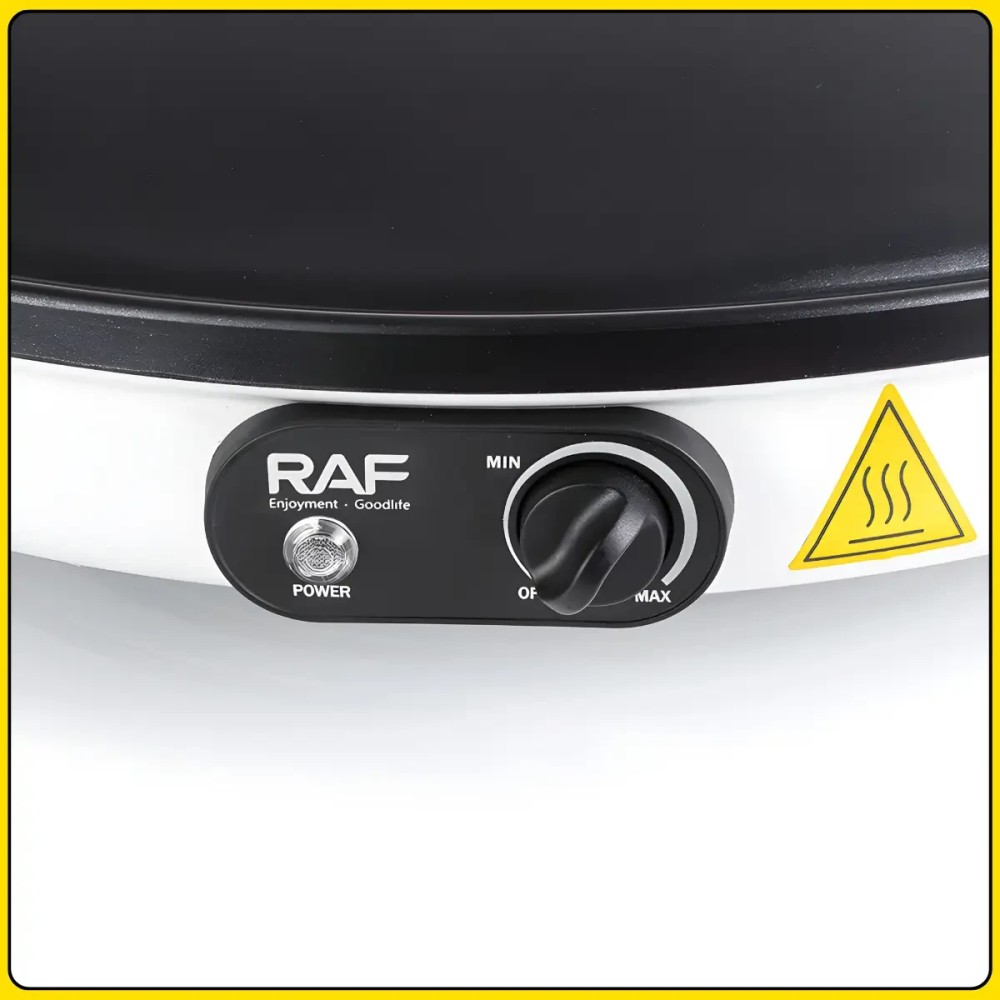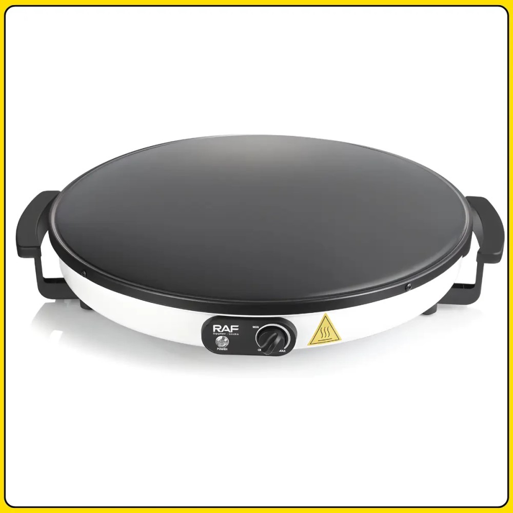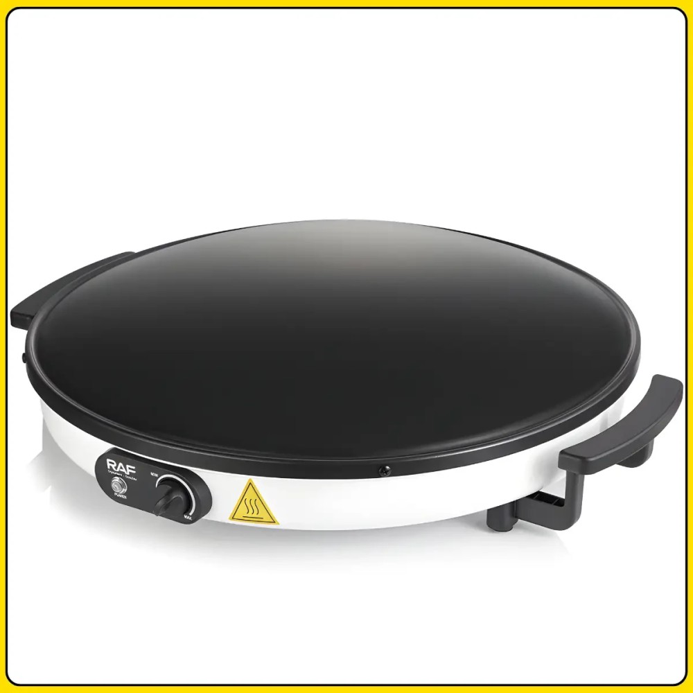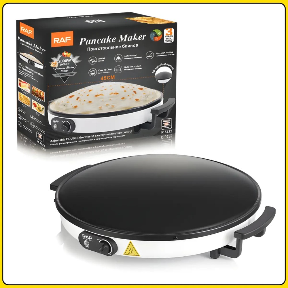 Електрична млинниця з робочою поверхнею 45 см і антипригарним покриттям RAF R.5422 2000W Електрична млинець RAF R.5422 призначена для швидкого та зручного приготування млинців, ліплень та інших виробів із тіста в домашніх умовах. Велика робоча поверхня діаметром 45 см дає змогу готувати млинці великого розміру або кілька виробів одночасно. Потужність 2000 Вт забезпечує швидке нагрівання та стабільну температуру під час приготування. Антипригарне покриття запобігає прилипанню тіста та спрощує догляд за поверхнею після використання. Технологія 3D сферичної поверхні сприяє рівномірному розподілу тепла по всій робочій зоні, завдяки чому млинці пропікаються однаково по всій площі. Компактна конструкція та просте керування роблять млинцю зручною для щоденного використання на кухні. Переваги: Велика робоча поверхня: діаметр 45 см підходить для приготування великих млинців і ліплень Висока потужність: 2000 Вт забезпечує швидке нагрівання та стабільну роботу Антипригарне покриття: запобігає пригоранню та полегшує очищення Рівномірне нагрівання: технологія 3D поверхні розподіляє тепло по всій площі Зручність приготування: млинці легко перевертаються і знімаються Економія часу: швидкий вихід на робочу температуру Характеристики: Тип пристрою: електрична млинець Бренд: RAF Модель: R.5422 Потужність: 2000 Вт Діаметр робочої поверхні 45 см Покриття: антипригарний Технологія нагрівання: 3D сферична поверхня Нагрев: рівномірний Колір корпусу: білий Розміри: 55×12 см Призначення: приготування млинців і пелюшок Напруга: 220-240 В Частота: 50-60 Гц