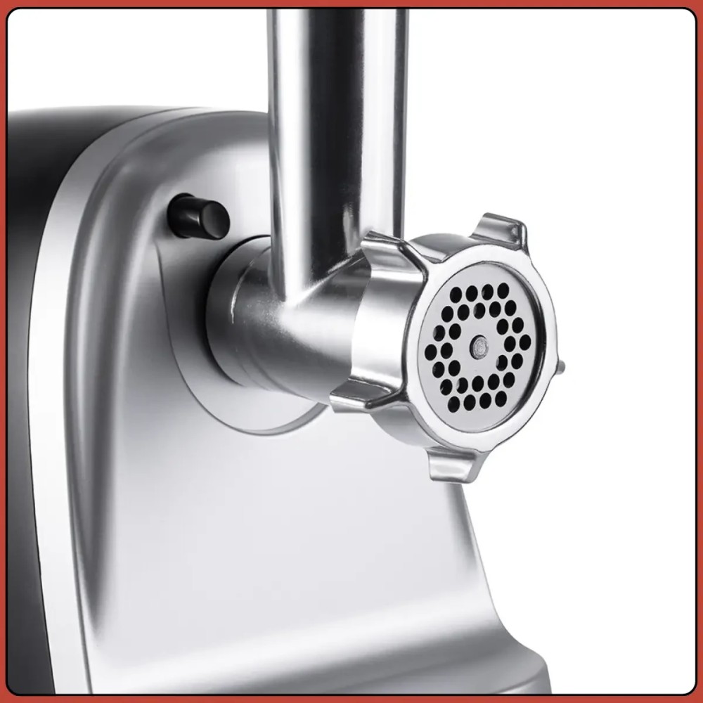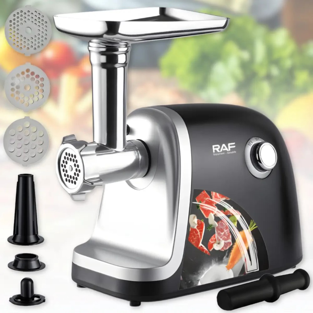 Електрична м'ясорубка з насадкою для кебе та дисками різного помелу RAF R.3376 1000W М'ясорубка RAF R.3376 призначена для швидкого й ефективного перероблення м'яса в домашніх умовах. Номінальна потужність 1000 Вт забезпечує стабільну роботу та рівномірний помел, даючи змогу без зайвих зусиль готувати фарш для різних страв. Корпус виготовлений у чорно-сріблястому кольорі та гармонійно вписується в інтер'єр кухні, а компактні розміри спрощують розміщення і зберігання. Шнек і лезо з неіржавкої сталі вирізняються міцністю й довговічністю, забезпечуючи якісний результат під час кожного використання. Функція реверсу допомагає легко справлятися із застряганням продуктів, а зручне зберігання кабелю під корпусом робить експлуатацію акуратною й безпечною. До комплекту входять необхідні насадки, що розширюють можливості приготування домашніх страв. Переваги: Оптимальна потужність: забезпечує ефективне перероблення м'яса Функція реверсу: полегшує роботу під час застрягання продуктів Надійний шнек: виготовлений із неіржавкої сталі Гостре лезо: стабільний і рівномірний помел Компактні розміри: зручність розміщення на кухні Зберігання кабелю: акуратне й безпечне використання Розширена комплектація: підходить для різних видів страв Характеристики: Тип пристрою: електрична м'ясорубка Модель: RAF R.3376 Номінальна потужність: 1000 Вт Напруга: 220-240 В Частота: 50-60 Гц Матеріал корпусу: пластик Колір корпусу: чорний зі сріблястими елементами Материал шнека: неіржавка сталь Матеріал леза: неіржавка сталь Функція реверсу: є Зберігання кабелю: під корпусом Розміри: 36×18×33 см Особливості: знімні частини, двоступенева конструкція Комплектація М'ясорубка RAF R.3376 Штовхач Диски для фаршу — 3 шт. Насадка для ковбаси Насадка для кебе