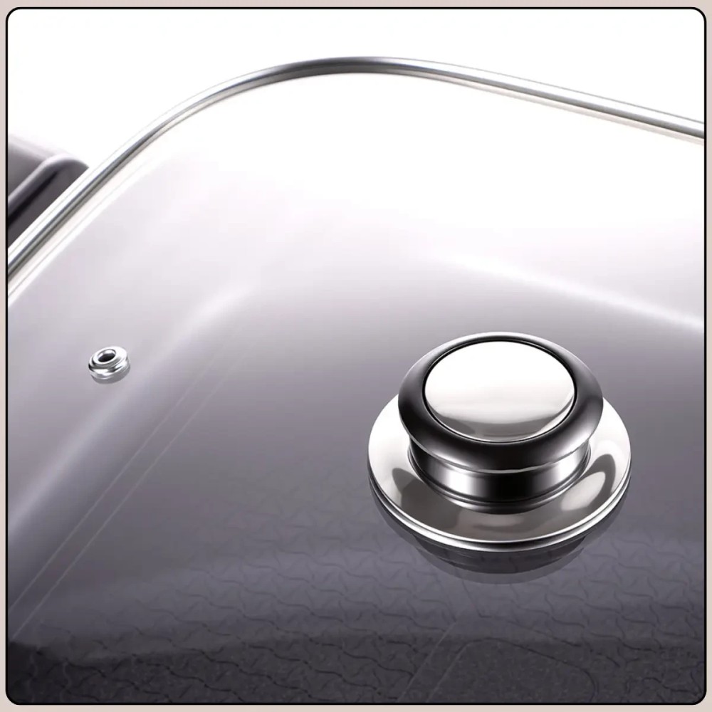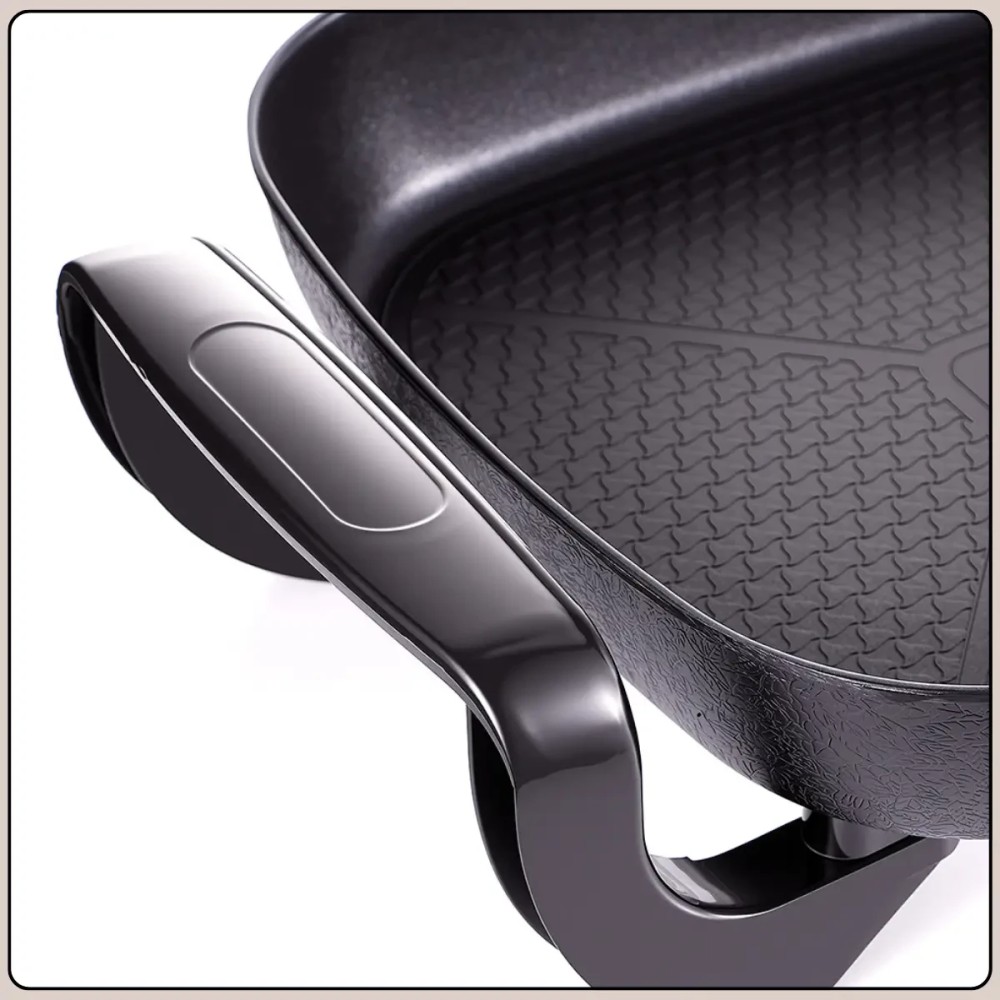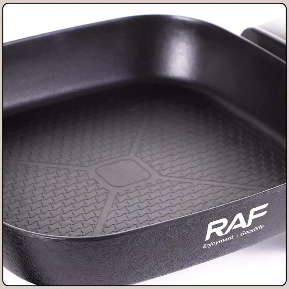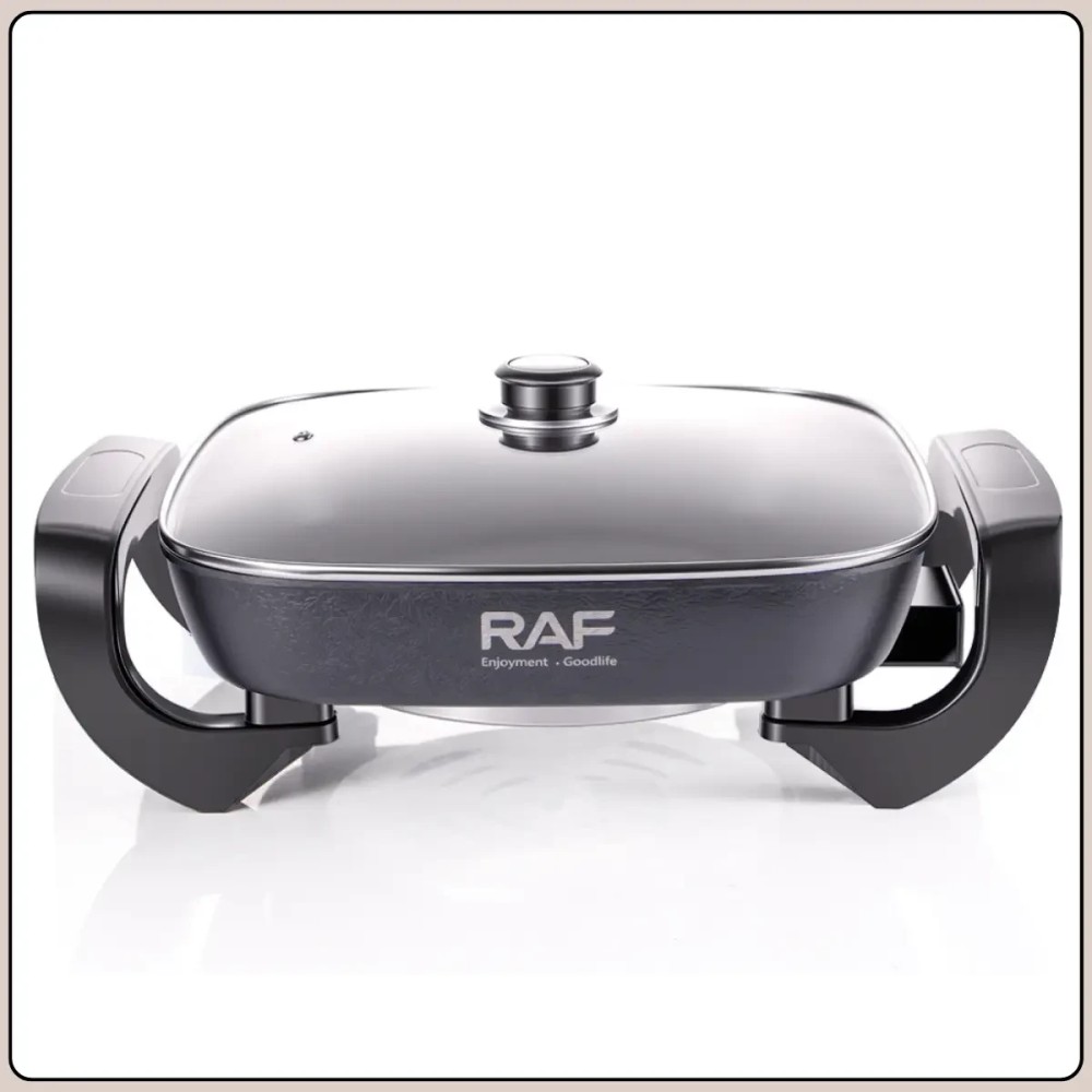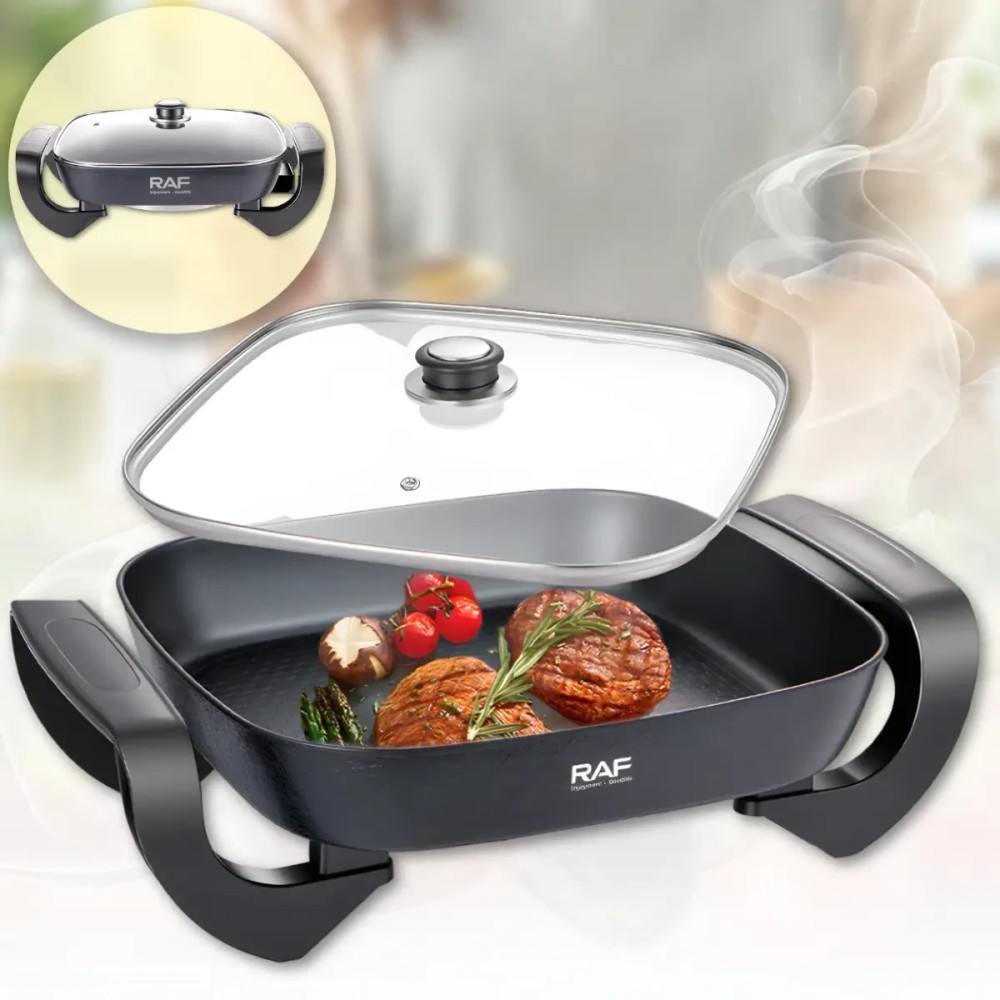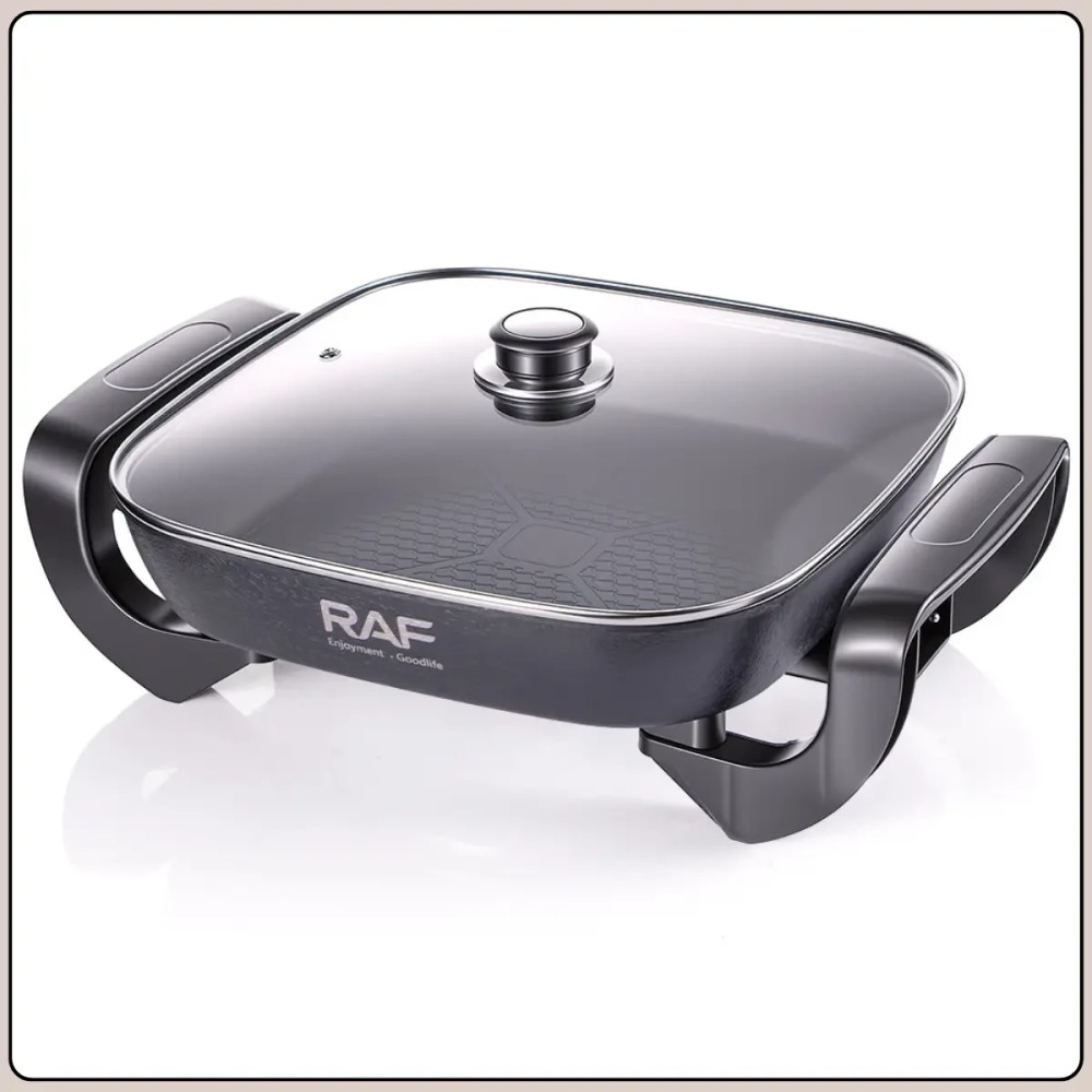 Електрична сковорода зі скляною кришкою і антипригарним покриттям RAF R.5478 1000W Електрична сковорода RAF R.5478 призначена для зручного приготування різноманітних страв в домашніх умовах. Потужність 1000 Вт забезпечує стабільне нагрівання, а місткість 5 літрів дає змогу готувати страви для всієї родини. Корпус з алюмінієвого лиття сприяє рівномірному розподілу тепла та підтримці заданої температури під час приготування. Антипригарне покриття запобігає прилипанню продуктів і неабияк спрощує очищення після використання. Прозора скляна кришка з отвором для випуску пари дає змогу контролювати процес приготування без потреби відкривати сковороду. Механічний регулятор температури забезпечує точне настроювання нагрівання, а зручні ручки не нагріваються й підвищують комфорт експлуатації. Переваги: Велика місткість: об'єм 5 літрів для приготування великих порцій Антипригарне покриття: запобігає пригоранню їжі Рівномірне нагрівання: якісне термооброблення продуктів Механічне керування: просте та точне налаштування температури Прозора кришка: зручний контроль процесу приготування Отвір для пари: запобігає надмірному тиску Безпечні ручки: не нагріваються під час роботи Характеристики: Тип пристрою: електрична сковорода Потужність: 1000 Вт Місткість: 5 л Матеріал корпусу: алюмінієве лиття Покриття: антипригарний Керування: механічний регулятор температури Кришка: скляна (з отвором для випуску пари) Особливості: зручні ручки, що не нагріваються Напруга: 220-240 В Частота: 50-60 Гц Розмір: 40×30×12 см Колір корпусу: чорний