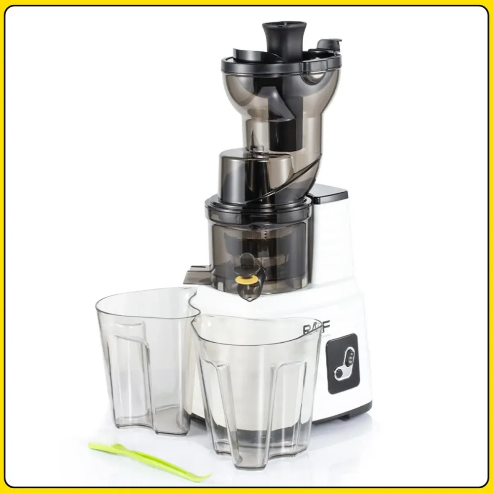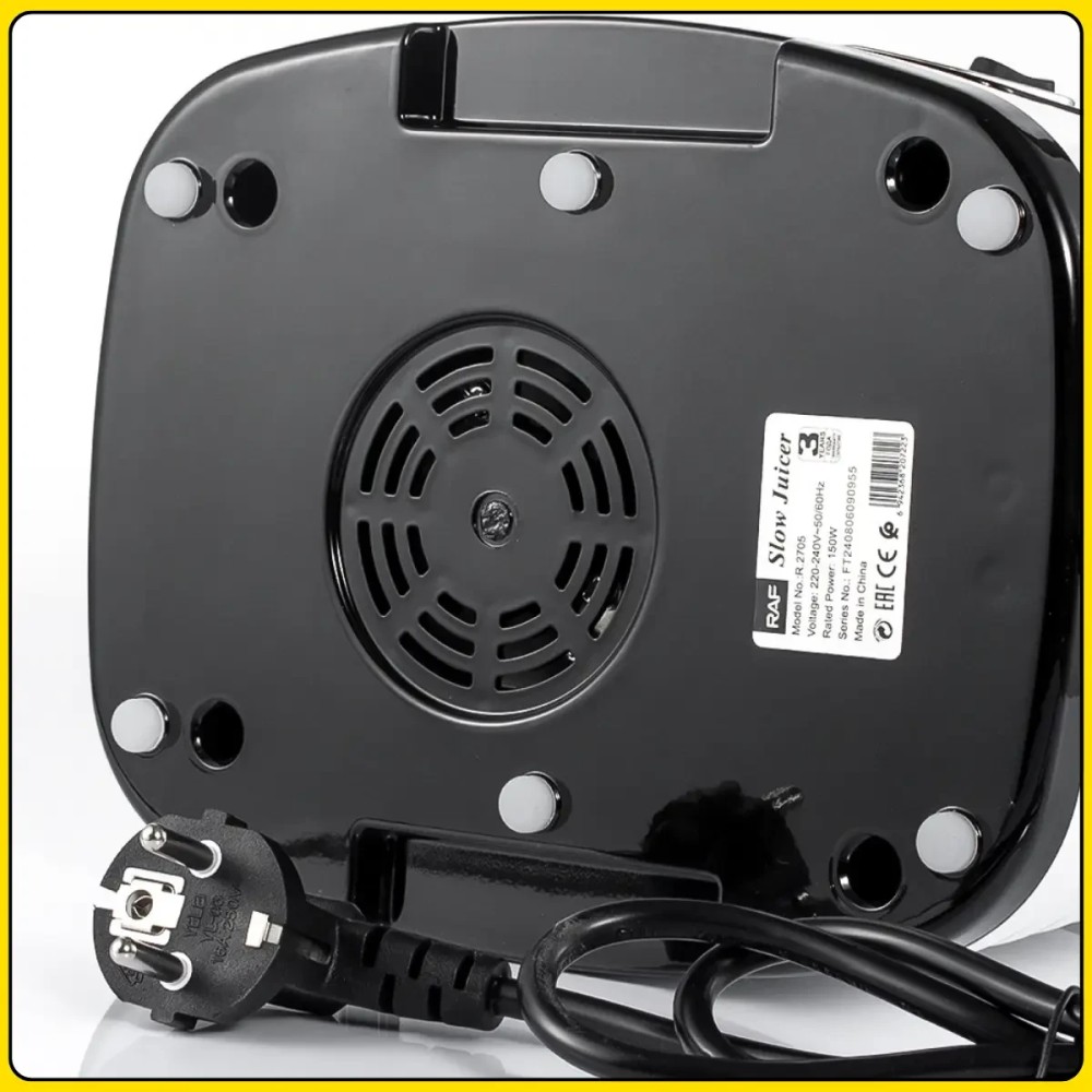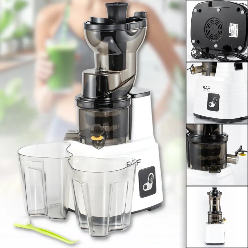 Електрична соковичавниця із широким завантажувальним отвором і реверсом RAF R.2705 150W Соковижималка RAF R.2705 призначена для швидкого та зручного приготування свіжих соків в домашніх умовах. Потужність 150 Вт і продумана конструкція забезпечують ефективне перероблення фруктів, овочів і зелені за низького рівня шуму. Широкий завантажувальний отвір 125 мм дає змогу завантажувати цілі плоди без попереднього нарізання, що неабияк заощаджує час підготовки. Компактний корпус із міцного пластику легко розміщується на кухні і не займає багато місця. Соковичавниця обладнана функцією реверсу для запобігання застряганню продуктів і простим кнопковим керуванням. Знімні елементи спрощують очищення після використання, а контейнер для соку об'ємом 300 мл підходить для щоденного приготування свіжих напоїв удома. Переваги: Широкий завантажувальний отвір: дає змогу завантажувати цілі фрукти без нарізування Низький рівень шуму: комфортне використання будь-коли Функція реверсу: допомагає уникнути заклинювання продуктів Компактні розміри: зручно зберігати та використовувати на невеликій кухні Проста розбірка: полегшує миття та догляд за пристроєм Ефективне перероблення: підходить для твердих овочів, фруктів і зелені Характеристики: Тип пристрою: електрична соковичавниця Бренд: RAF Модель: R.2705 Потужність: 150 Вт Напруга живлення: 220-240 В Частота тока: 50-60 Гц Матеріал корпусу: пластик Об'єм контейнера для соку: 300 мл Завантажувальний отвір: 125 мм Функції увімкнення, вимикання, реверс Рівень шуму: знижений Автоматичне викидання м'якоті: є Щітка для чищення: є Призначення: фрукти, овочі, зелень Розміри пристрою: 43×12×20 см Колір корпусу: білий Комплектація Соковичавниця Контейнер для соку Контейнер для м'якоті Штовхач Щітка для чищення