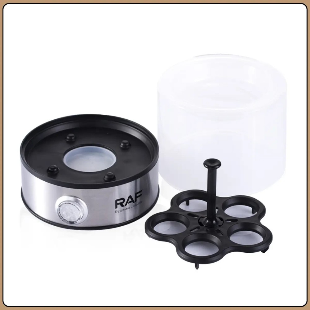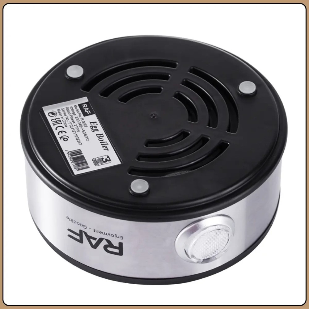 Електрична яєчнарка із захистом від перегрівання та автоматичним вимкненням RAF R.0067 210W Електрична яєчнарка RAF R.0067 призначена для швидкого та зручного приготування до 5 яєць одночасно. Компактний розмір і акуратний корпус із неіржавкої сталі та пластику роблять прилад практичним рішенням для кухні, офісу або дачі. Пристрій дає змогу готувати яйця у формі, у мішечок або вкруту залежно від кількості доданої води, що спрощує процес приготування сніданку без постійного контролю. Яйцеварка обладнана керуванням однією кнопкою і світловим індикатором роботи, завдяки чому користуватися приладом максимально просто. Автоматичне вимкнення та захист від перегрівання забезпечують безпечну експлуатацію та стабільну роботу. Поверхні легко очищаються після використання, а невелика вага та габарити дають змогу зручно зберігати прилад навіть в обмеженому просторі. Переваги: Компактний розмір: не займає багато місця на кухні Місткість 5 яєць: оптимально для сім'ї або швидкого сніданку Керування однією кнопкою: простота використання Автоматичне вимкнення: безпечна робота без контролю Захист від перегрівання: додаткова надійність Різні ступені готовності: зминку, у мішечок, вкруту Світловий індикатор: наочний контроль роботи Характеристики: Бренд: RAF Модель: R.0067 Тип пристрою: електрична яйцеварка Потужність: 210 Вт Місткість до 5 яєць Керування: кнопкове Індикатор роботи: є Автоматичне вимкнення: є Захист від перегрівання: є Матеріал корпусу: неіржавка сталь і пластик Колір корпусу: сріблястий Напруга: 220-240 В Частота: 50-60 Гц Розмір: 14,5×13 см