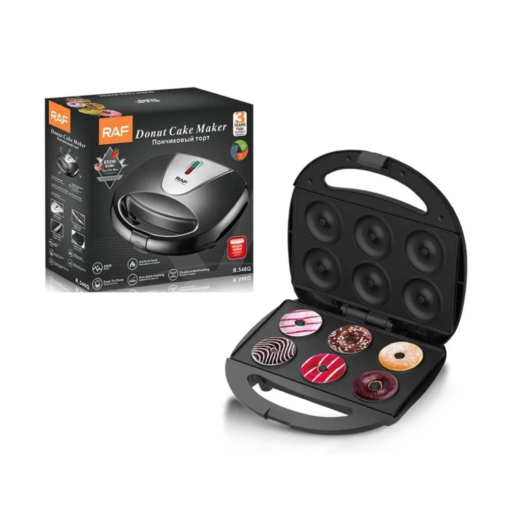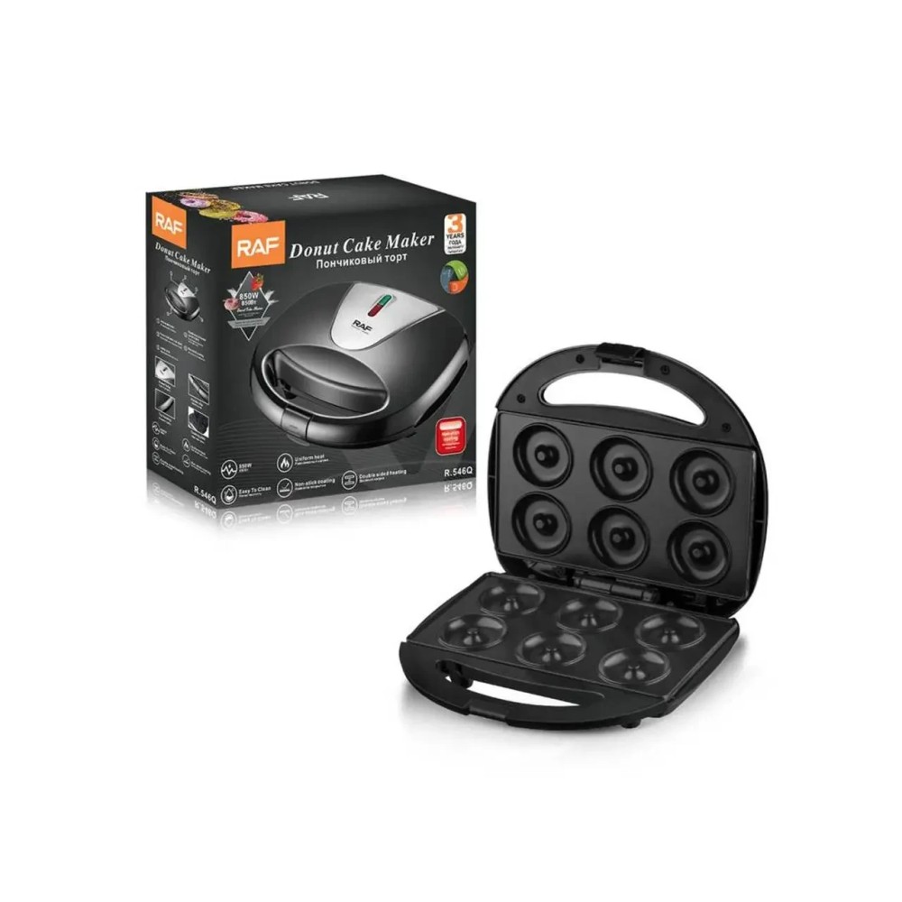 Електричний апарат для приготування пончиків RAF R.546Q Електрична хлібопічка на 6 пончиків Мініпончикова машина RAF R.546Q — випікає 6 маленьких пончиків за лічені хвилини! Електрична хлібопічка для пончиків завдяки антипригарному покриттю дає змогу швидко та легко мити цей кухонний прилад. Особливості: Пончикова машина потужністю 850 Вт дає змогу випікати 6 пончиків усього за кілька хвилин. Замок гарантує безпеку користувачів, а дві нековзні ніжки забезпечують надійне захоплення, яке дає змогу пристрою для виготовлення пончиків стійко стояти на гладкій стільниці. Світлодіодні індикатори повідомлять вам, коли живлення увімкнене і страви готові до приготування. Прес з антипригарним покриттям із двома пластинами забезпечує рівномірне приготування й підрум'янення. Випікайте різноманітні улюблені страви, наприклад, у шоколаді, пряники, прозору глазур, посипку та багато іншого! Готуйте легкі вологі пончики, використовуючи звичайні дріжджі рецепти або рецепти тортів, безглютенові рецепти та навіть веганські рецепти. Характеристики: Бренд: Raf Модель: R.546Q Потужність 850 Вт Місткість на 6 пончиків діаметром 5 см Тарілки з антипригарним покриттям Світловий індикатор потужності та приготування Рівномірне нагрівання Нековзні основи Електричне, швидко та просто чистити