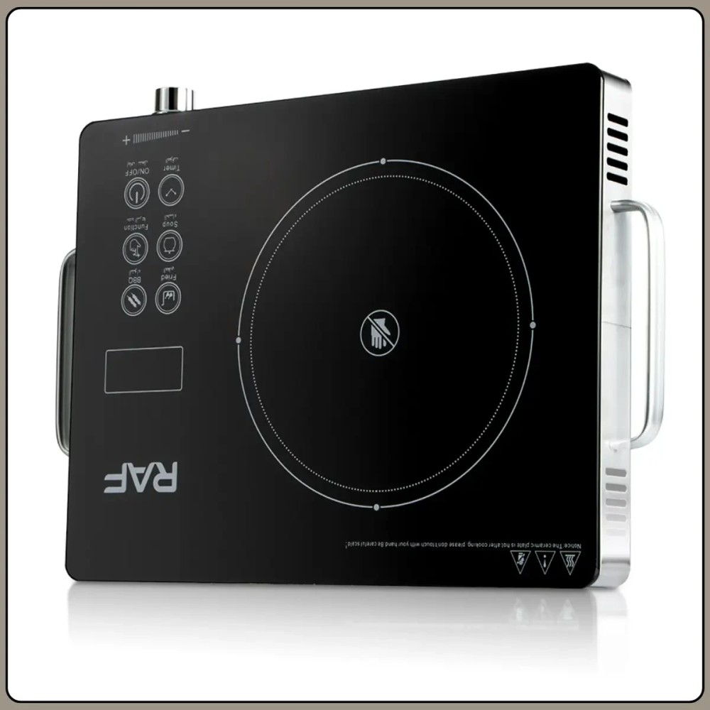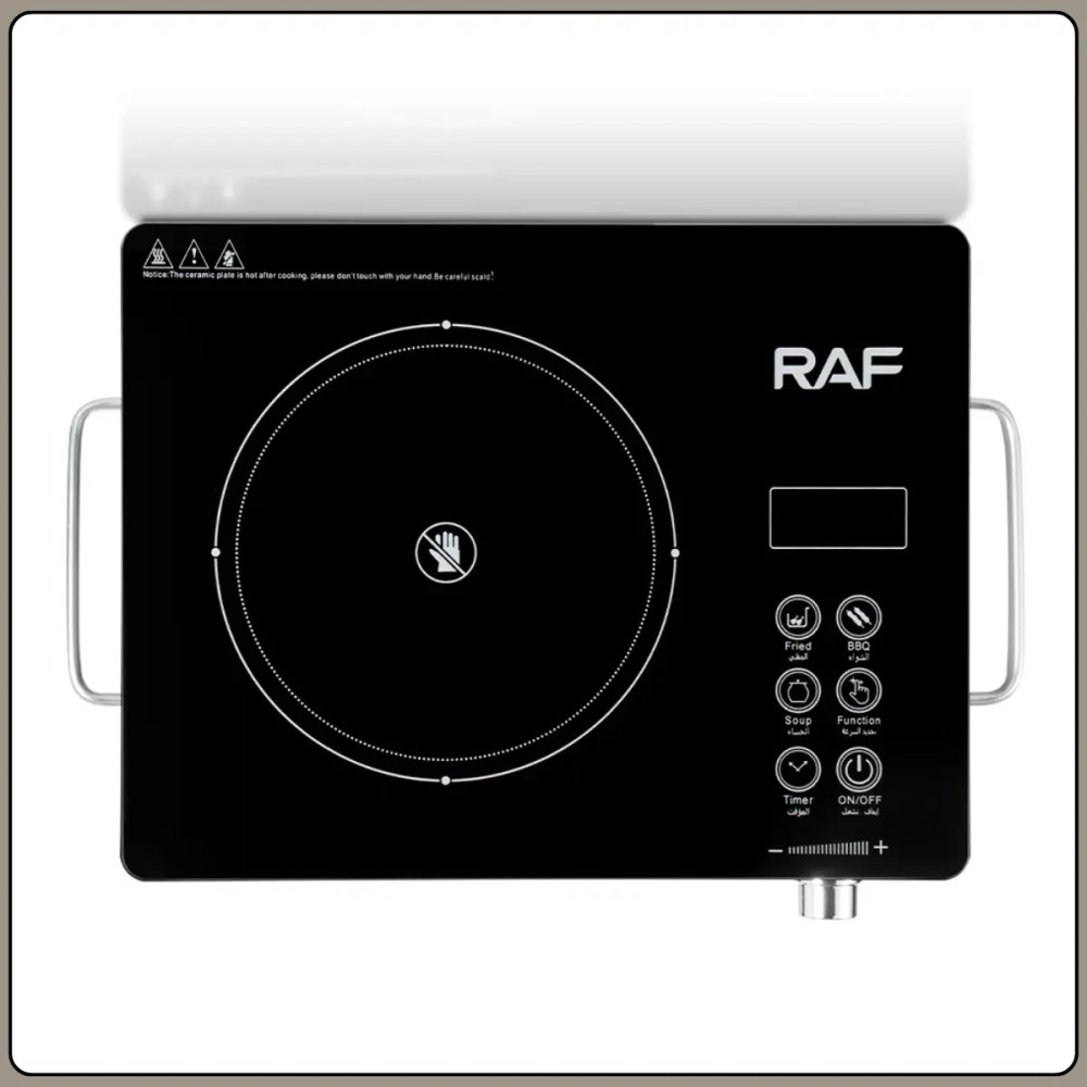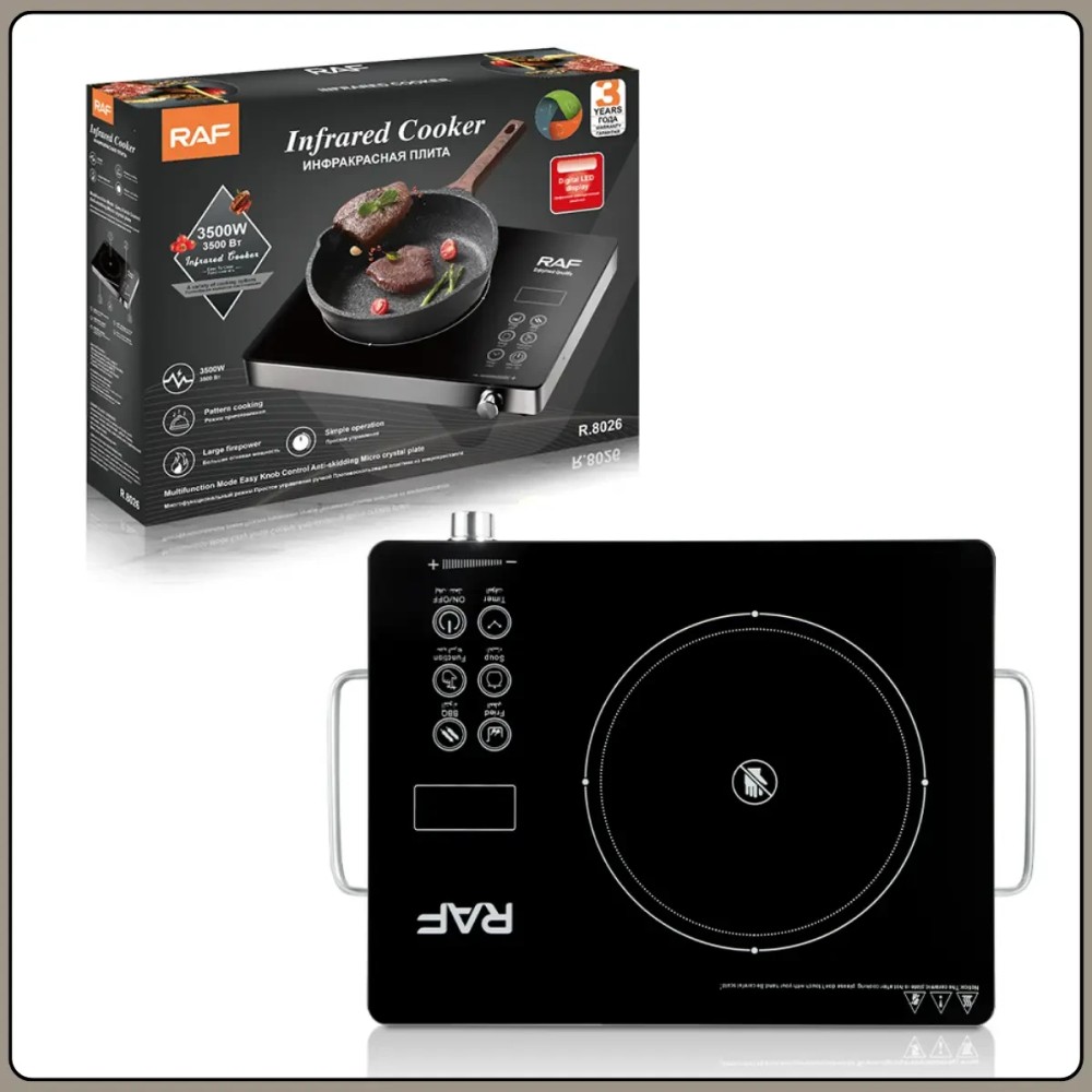 Настільна індукційна плита із сенсорним керуванням і LED-дисплеєм RAF R.8026 3500W Індукційна плита RAF R.8026 призначена для зручного та швидкого приготування їжі в домашніх умовах. Завдяки високій потужності 3500 Вт нагрівання відбувається рівномірно й ефективно, що дає змогу готувати, розігрівати й тушкувати продукти без втрати смакових якостей. Мікрокристалічна поверхня вирізняється міцністю і стійкістю до високих температур, а також легко очищається після використання. Плита обладнана сенсорною панеллю керування з цифровим LED-дисплеєм, що робить настроювання режимів простим і наочним. Універсальність моделі дає змогу використовувати посуд із будь-яких термостійких матеріалів, включно зі сталлю, чавуном, алюмінієм, міддю та керамікою. Компактні розміри роблять плиту зручною для кухні, дачі або знімного житла. Переваги: Висока потужність: забезпечує швидке нагрівання та скорочує час приготування Універсальність посуду: підходить для будь-якого термостійкого кухонного начиння Сенсорне керування: зручна та сучасна панель із точним настроюванням LED-дисплей: наочне зображення вибраних параметрів роботи Мікрокристалічна поверхня: стійка до нагрівання та легко очищається Регулювання потужності: дає змогу вибрати оптимальний режим приготування Характеристики: Тип плити: індукційна (одноконфоркова) Потужність: 3500 Вт Напруга живлення: 220 В Частота: 50 Гц Тип керування: сенсорне Дисплей: цифровий LED Матеріал поверхні: мікрокристалічна пластина Діаметр зони нагрівання: 22 см Сумісність із посудом: всі типи термостійких матеріалів Функції безпеки захист від перегрівання й автовимкнення Колір корпусу: чорний Габарити: 6х36х26 см