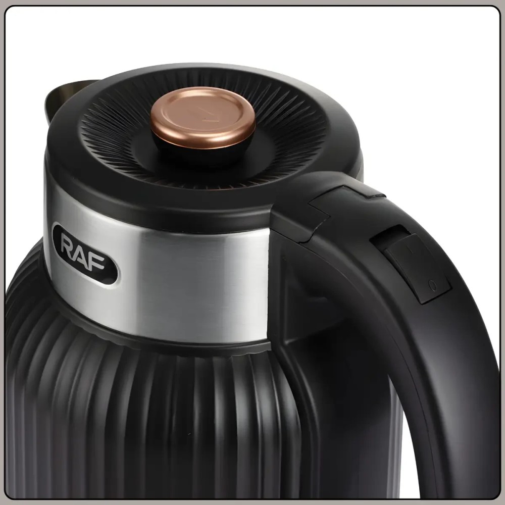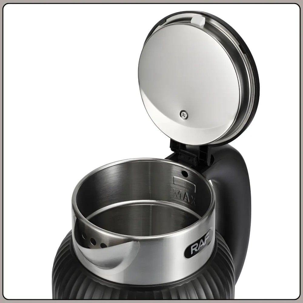 Электрический чайник RAF R.7984 предназначен для быстрого и удобного кипячения воды в домашних условиях. Мощность 1500 Вт обеспечивает эффективный нагрев, а объем 1,5 литра оптимально подходит для повседневного использования семьей или в офисе. Корпус выполнен из прочного пластика с элементами из нержавеющей стали, что сочетает практичность и современный внешний вид.