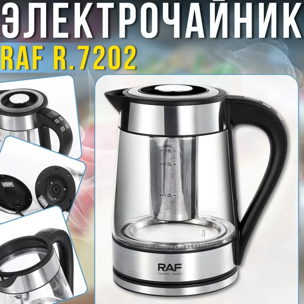 Электрический чайник 1.8 л с заварником и автоотключением RAF R.7202 2200W