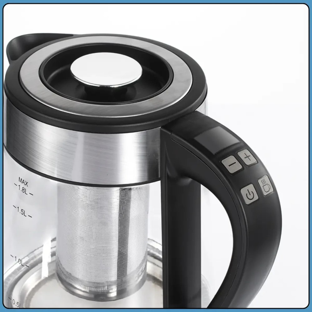 Электрический чайник RAF R.7202 сочетает функции классического чайника и заварника, что делает его удобным решением для повседневного использования. Корпус выполнен из прочного боросиликатного стекла и нержавеющей стали, благодаря чему прибор устойчив к высоким температурам и сохраняет аккуратный внешний вид. Встроенный фильтр позволяет заваривать листовой чай прямо в чайнике без использования дополнительной посуды.