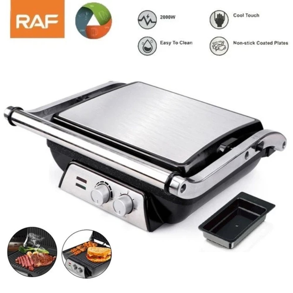 Електрогриль RAF R2684 – мобільний стаціонарний апарат, який Ви можете встановити в будь-якому зручному місці, а при необхідності винести на веранду або на вулицю, туди, де є можливість підключити його до стандартної електричної мережі. Такий гриль стане в нагоді в заміському будинку або на дачі, адже з ним ви зможете приготувати найсмачніші стейки, овочі, ковбаски і навіть шашлик у будь-яку погоду. Антипригарне покриття пластинок допоможе вам легко і швидко витерти її після використання. Створки гриля розкриваються на 180 градусів, що дозволяє використовувати їх як поверхні для смаження одночасно. Є спеціальний піддон, куди стікає весь сік від продуктів. Плавна регулювання температури дозволить вам підібрати оптимальний режим для будь-якого продукту.