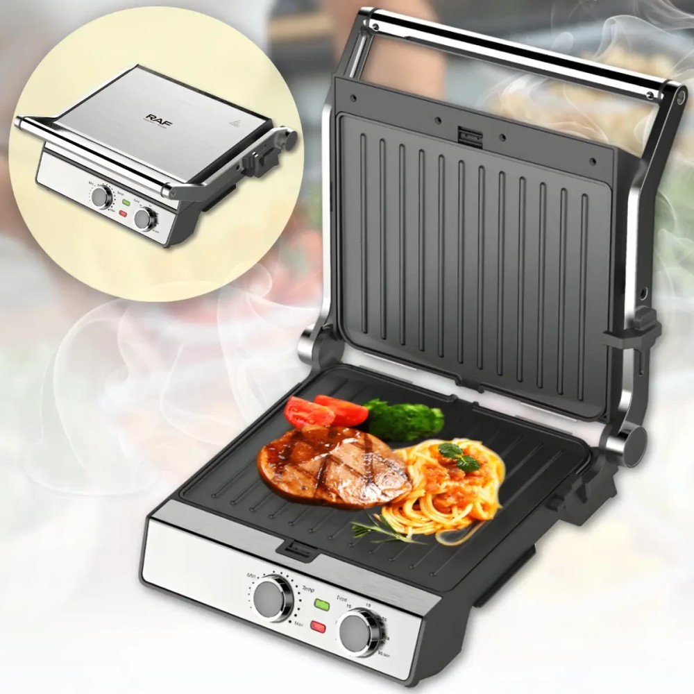 Електричний гриль з відкриванням на 180° і антипригарними пластинами RAF R.560 2200W