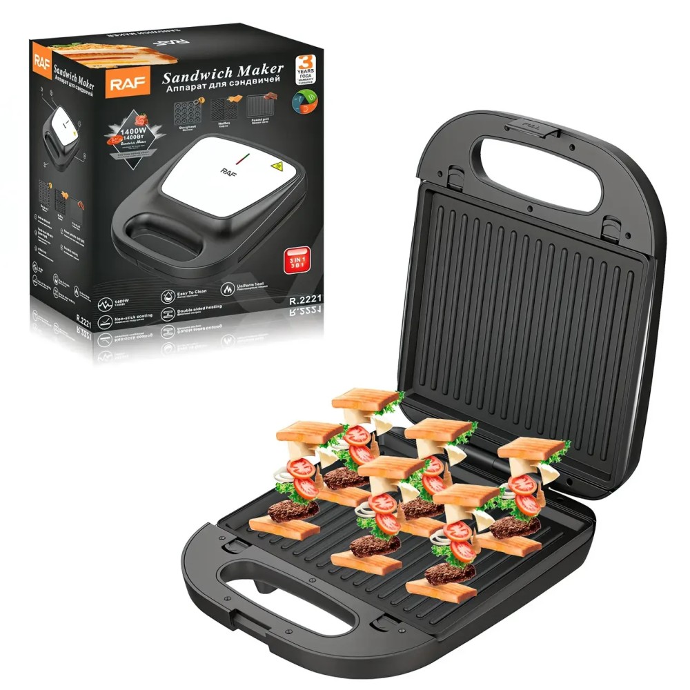 Сендвіч-мейкер з 3 змінними формами та антипригарним покриттям RAF R.2221 1400W