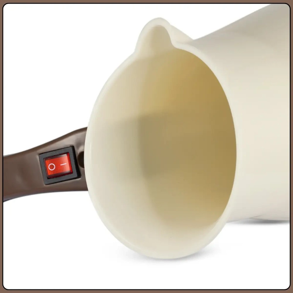 Електрична кавоварка турка RAF R.151 призначена для швидкого та зручного приготування ароматної кави в домашніх умовах. Потужність 1000 Вт забезпечує рівномірний нагрів і скорочує час приготування напою. Об'єм 500 мл дозволяє за один цикл приготувати від 4 до 6 чашок кави, що зручно як для індивідуального використання, так і для невеликої компанії. Кавоварка оснащена закритим нагрівальним елементом, механічним управлінням та кнопкою включення з підсвіткою для наочного контролю роботи. Вбудований захист від перегріву підвищує безпеку експлуатації та продовжує термін служби пристрою. Компактні розміри дозволяють легко розмістити турку на кухні або взяти з собою у подорож, а гладкі поверхні спрощують очищення після використання. Переваги: