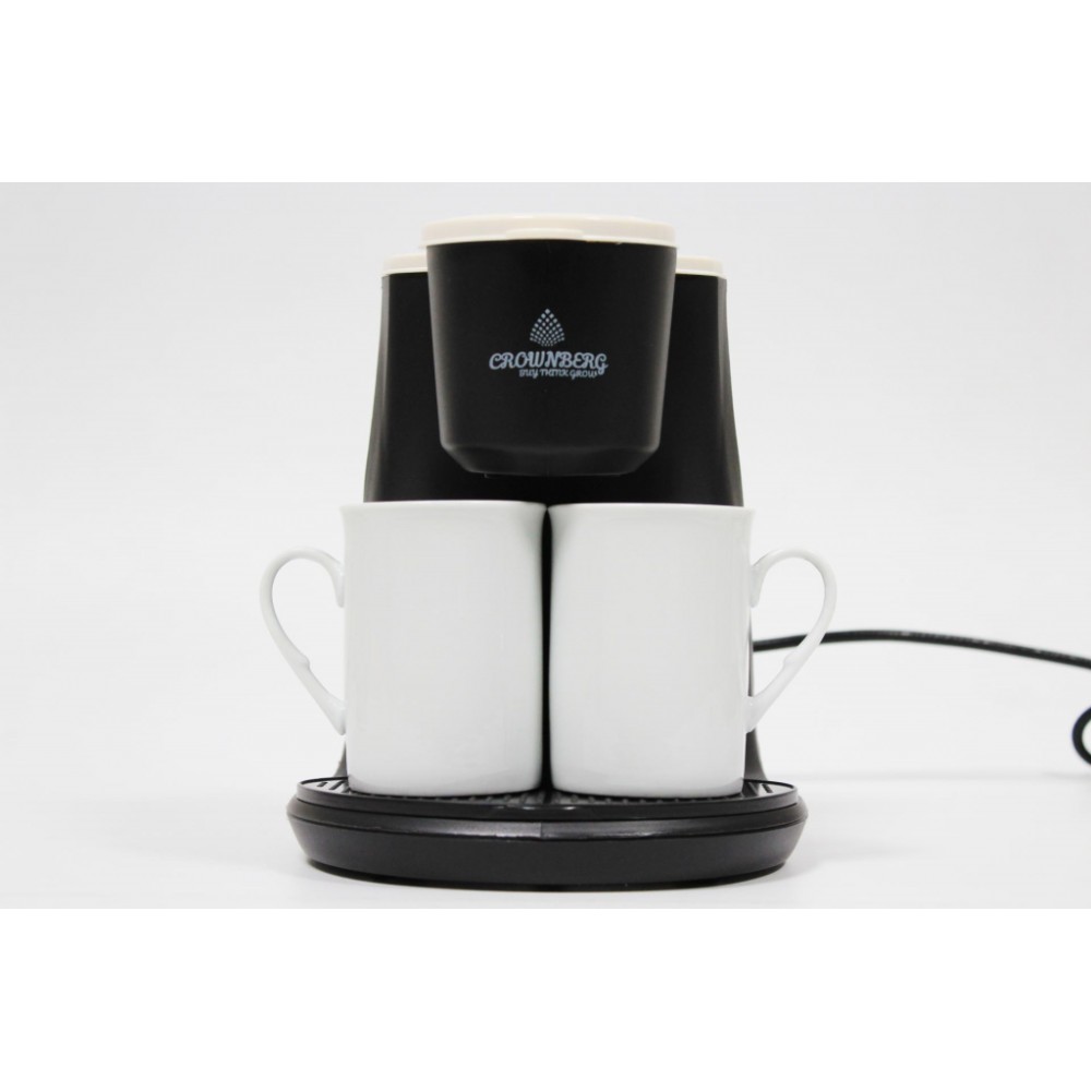 Крапельна кавоварка Crownberg CB 1568 600 Вт — виручить Вас рано вранці та заощадить час на приготування коханої кави. Все дуже просто — підставте улюблені чашки та натисніть на кнопку через 2 хвилини насолоджуйтеся ароматною кавою. Особливості крапельної кавоварки Crownberg CB-1560 на 600 Вт: Кавоварка Crownberg CB-1568 проста у використанні та не вимагає особливих навичок. Простота у використанні: Налийте воду, на свій смак, за допомогою мірної ложки додайте кави та просто увімкніть. Компактність і зручність. Кофеварка виготовлена з харчового пластику, який легко миється й ударостійкий. Чашки стоять на антиковзній поставці, яка ще й знімається, для миття, якщо раптом випадково пролилася кава. Характеристики: Напруга: 220-240 В Потужність: 600 Вт Легко чистить Комплектація Кофеварка 2 чашки( по 140 мл.) Інструкція Заводське паковання