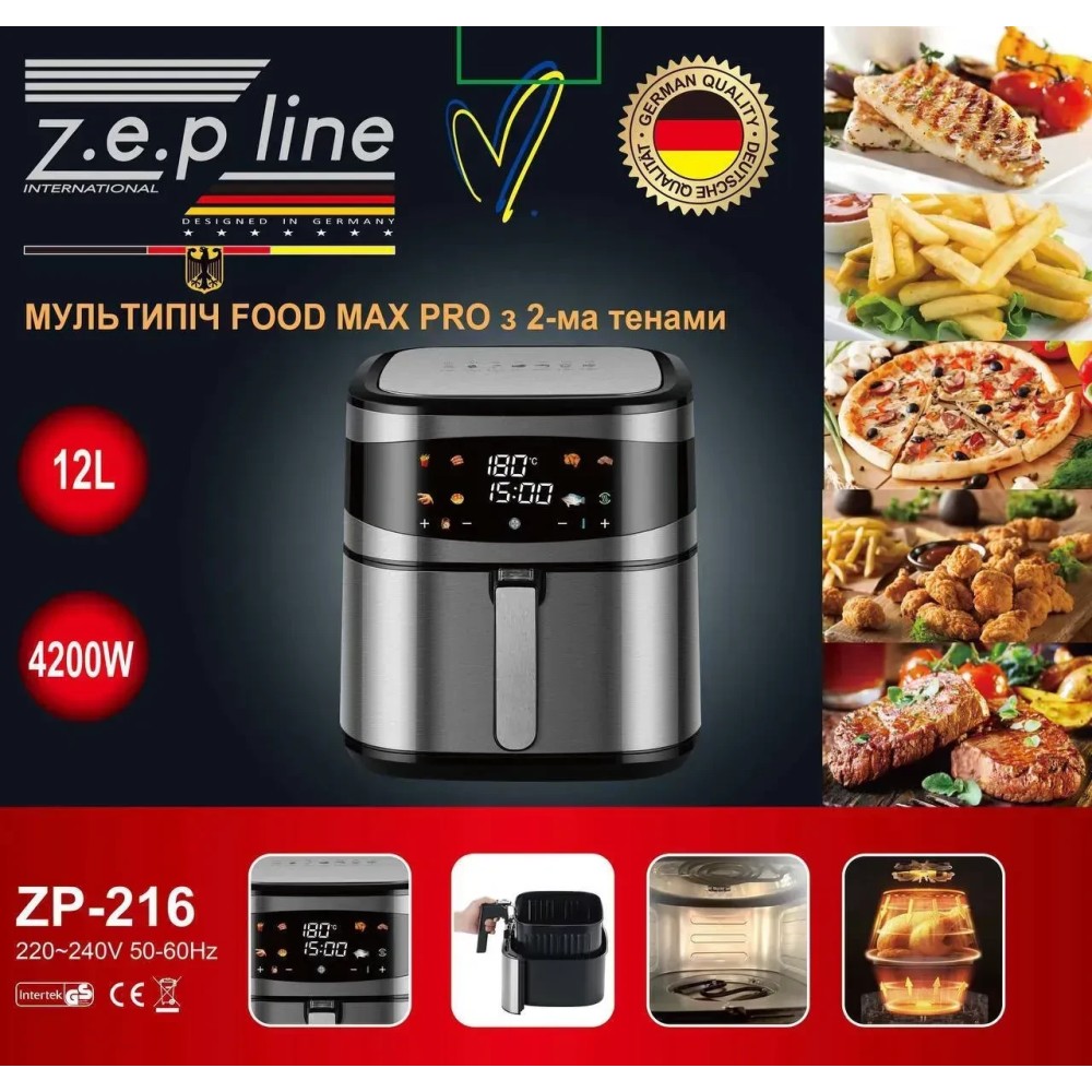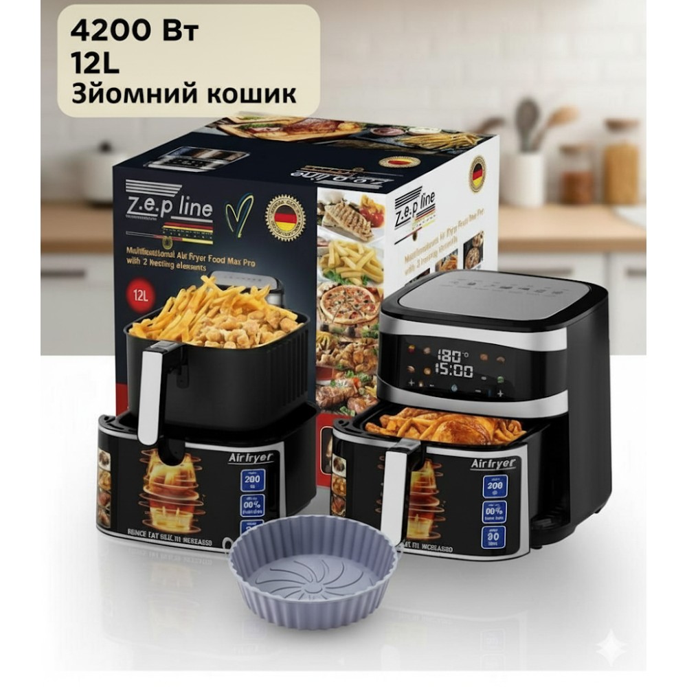 Кухонная аэрофритюрница Zepline ZP-216 на 12 л, 4200 Вт, мультипечь с большой чашей, фритюрница без масла и силиконовой формой