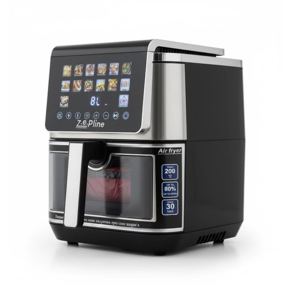 Потужна та універсальна аерофритюрниця Zepline ZP00340 об'ємом 13 літрів — ідеальне рішення для великої родини або активного готування. Завдяки високій потужності 4200 Вт та вбудованому грилю, ви швидко та смачно приготуєте м'ясо, овочі, випічку та навіть шашлик — безайвої олії.