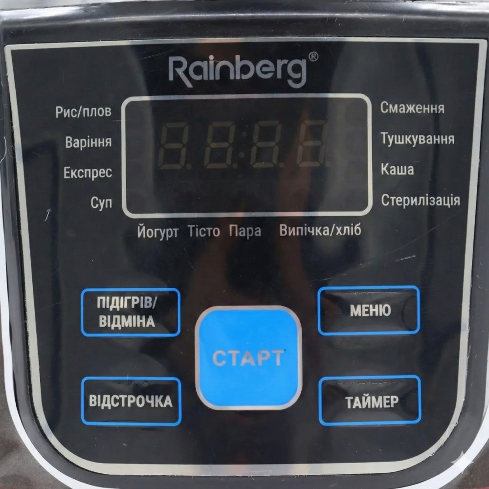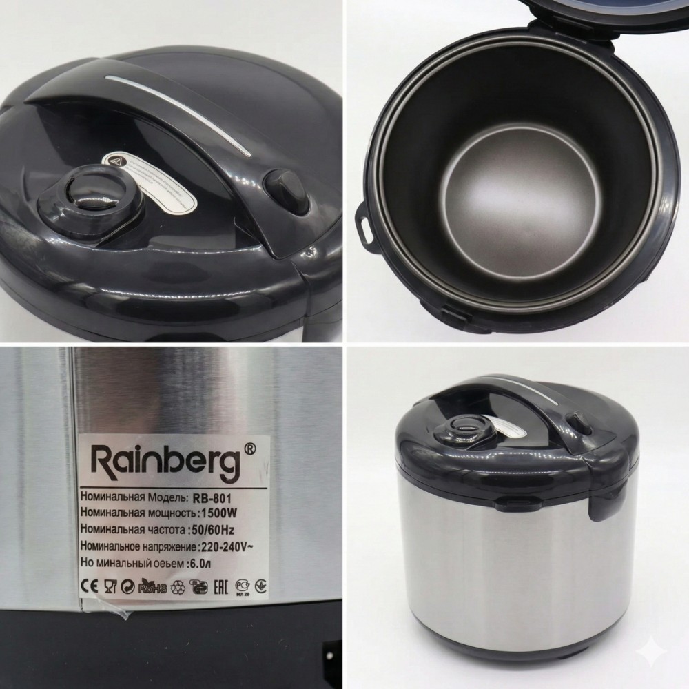 Мультиварка Rainberg RB-801, з потужністю 1500 Вт та об'ємом чаші 6 літрів, являє собою зручний і функціональний кухонний прилад. Вона оснащена 12 різноманітними програмами, що дозволяють готувати різні страви за допомогою різноманітних методів обробки. Керування мультиваркою здійснюється електронно, і кожна програма має свою власну кнопку на інтуїтивно зрозумілому рідкокристалічному дисплеї, на якому також відображаються інформація про поточний процес і годинник. Крім того, ця модель має додаткові функціональні особливості, такі як пароварка та рисоварка, що розширює можливості приготування різних страв. Ручний режим надає користувачу більше гнучкості в кулінарній творчості, а антипригарне внутрішнє покриття каструлі полегшує процес приготування та спрощує догляд за пристроєм. Наявність 24-годинного таймера відстрочки приготування робить використання мультиварки Rainberg RB-801 ще більш зручним і адаптованим до потреб сучасної кухні.