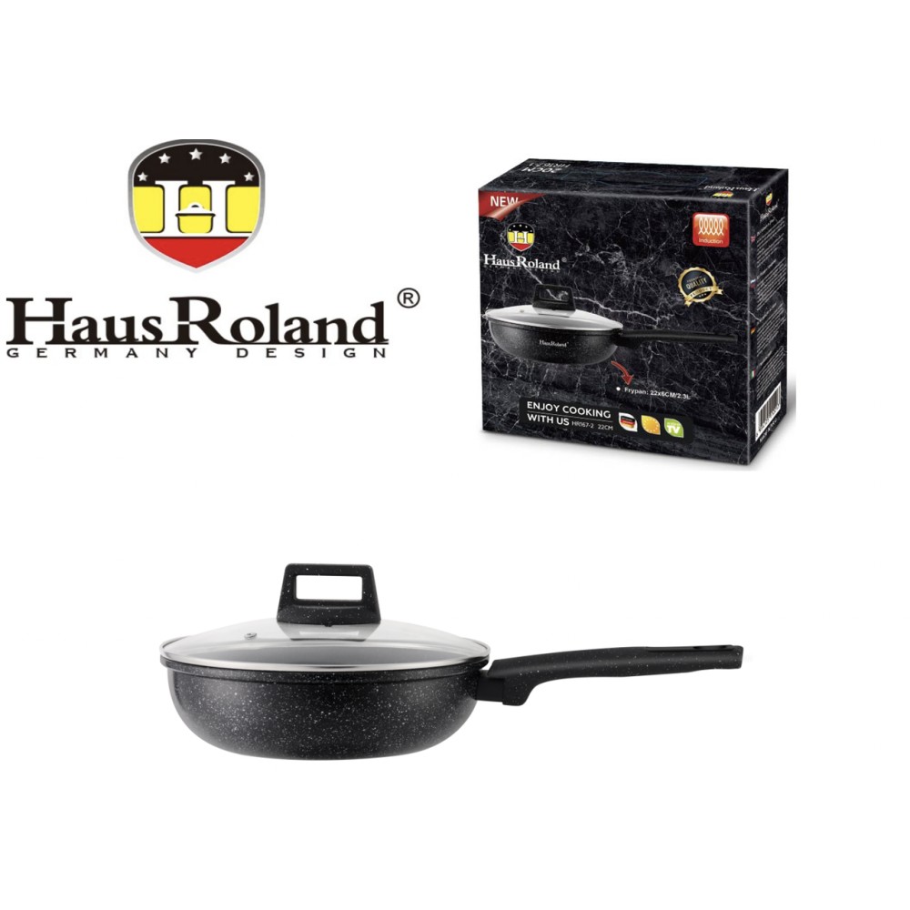 Оцініть зручність і функціональність сковороди Haus Roland HR167-5. Її алюмінієвий корпус забезпечує швидке та рівномірне нагрівання, а багатошарове гранітне антипригарне покриття дає змогу готувати корисні страви з мінімальною кількістю олії та не вимагає складного догляду. Велика глибина та діаметр роблять її універсальною як для смаження, так і для тушкування. Ключовою перевагою є унікальна кришка із загартованого скла: її ручка має плоску основу, що дає змогу ставити кришку вертикально на стіл, запобігаючи утворенню калюж і економлячи простір. Ергономічна фіксована ручка з бакеліту з покриттям Soft-Touch не нагрівається й забезпечує надійне захоплення. Двошарове дно зі сталевим диском підходить для всіх типів плит, включно з індукційними. Переваги Зносостійке гранітне покриття: Для приготування здорової їжі та легкого очищення. Інноваційна вертикальна кришка: Можна ставити на стіл, економлячи місце та зберігаючи чистоту. Алюмінієвий корпус: Забезпечує швидке та рівномірне нагрівання. Великий об'єм: Ідеально підходить для приготування страв на велику родину. Ергономічна ручка Soft-Touch: Не нагрівається й забезпечує комфортне захоплення. Технічні характеристики Артикул: HR167-5 Бренд: Haus Roland Матеріал корпусу: Алюміній Діаметр: 28 см Висота без кришки: 7,0 см Об'єм: 4,3 л Покриття: Внутрішнє — багатошарове антипригарне "гранітне"; зовнішнє — жаростійке "гранітне" Дно: Двошарове, зі сталевим індукційним диском Ручки: Фіксована, бакеліт із покриттям Soft-Touch Кришки: Загартоване скло з вертикальною ручкою-підставкою й отвором для пари Сумісність із плитами: Усі типи, включно з індукційними Вага: 1,8 кг Комплектація Сковорода: діаметр 28 см, об'єм 4,3 л Кришка