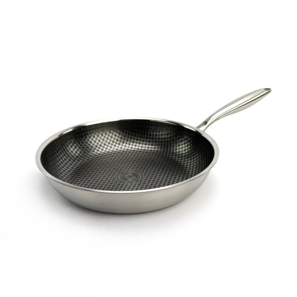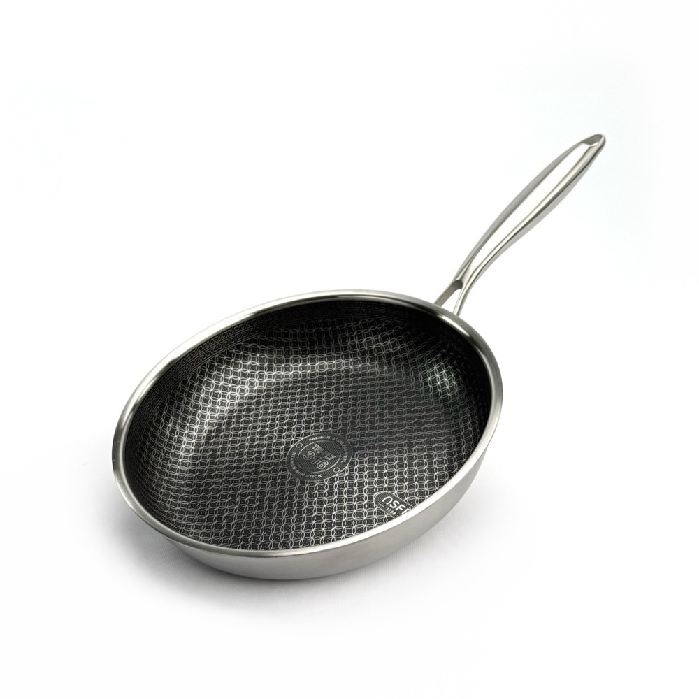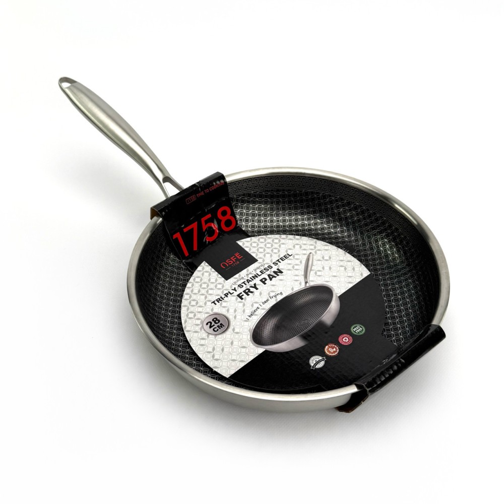 Сковорода OSFE EB-7528 створена для тих, хто шукає безкомпромісну якість. Її головна особливість — гібридна внутрішня поверхня: на антипригарний шар (PFAS Free) нанесена сітка з неіржавкої сталі. Ця сталева сітка захищає антипригарний шар від пошкоджень, даючи змогу використовувати навіть металеві аксесуари та забезпечує чудовий розподіл олії. Корпус сковороди виготовлений за професійною тришаровою технологією Tri-Ply: Внутрішній шар: Харчова неіржавка сталь SUS316 — гігієнічна, довговічна та нетоксична. Середній шар: Алюміній — гарантує миттєве й ідеально рівномірне нагрівання по всій поверхні. Зовнішній шар: Магнітна неіржавка сталь SUS430 — забезпечує сумісність з усіма типами плит, включно з індукційними. Товстий корпус чудово проводить тепло, а міцна сталева ручка забезпечує надійне схоплення. Переваги Гібридне покриття: Поєднує антипригарні властивості та неймовірну стійкість до подряпин. Тришаровий корпус Tri-Ply: Гарантує швидке та рівномірне нагрівання без "гарячих точок". Преміальна сталь 316: Внутрішній шар абсолютно безпечний, не виділяє токсинів і довговічний. Виняткова міцність: Стійка до деформації та пошкоджень. Універсальна сумісність: Підходить для газових, електричних, склокерамічних та індукційних плит. Безпека: Не містить PFAS (пер- і поліфторкальних речовин). Рекомендації щодо догляду Для продовження терміну експлуатації рекомендується ручне миття. Не ставте розпечену сковороду під холодну воду, дайте їй охолонути. Щоб уникнути точкової корозії, додавайте сіль до вже гарячої води або страви. Не використовуйте для чищення абразивні засоби (наприклад, з хлором) або жорсткі металеві губки. Технічні характеристики Артикул: EB-7528 Бренд: OSFE Діаметр: 28 см Габаритні розміри (з ручкою): 52 х 31 х 10 см Матеріал корпусу: Неіржавка сталь (Трьохшаровий Tri-Ply: SUS316 + Алюміній + SUS430) Покриття: Гібридне (сталева сітка + антипригарний шар PFAS Free) Кришка: Немає Сумісність із плитами: Усі типи, включно з індукційними Комплектація Сковорода 28 см (без кришки)